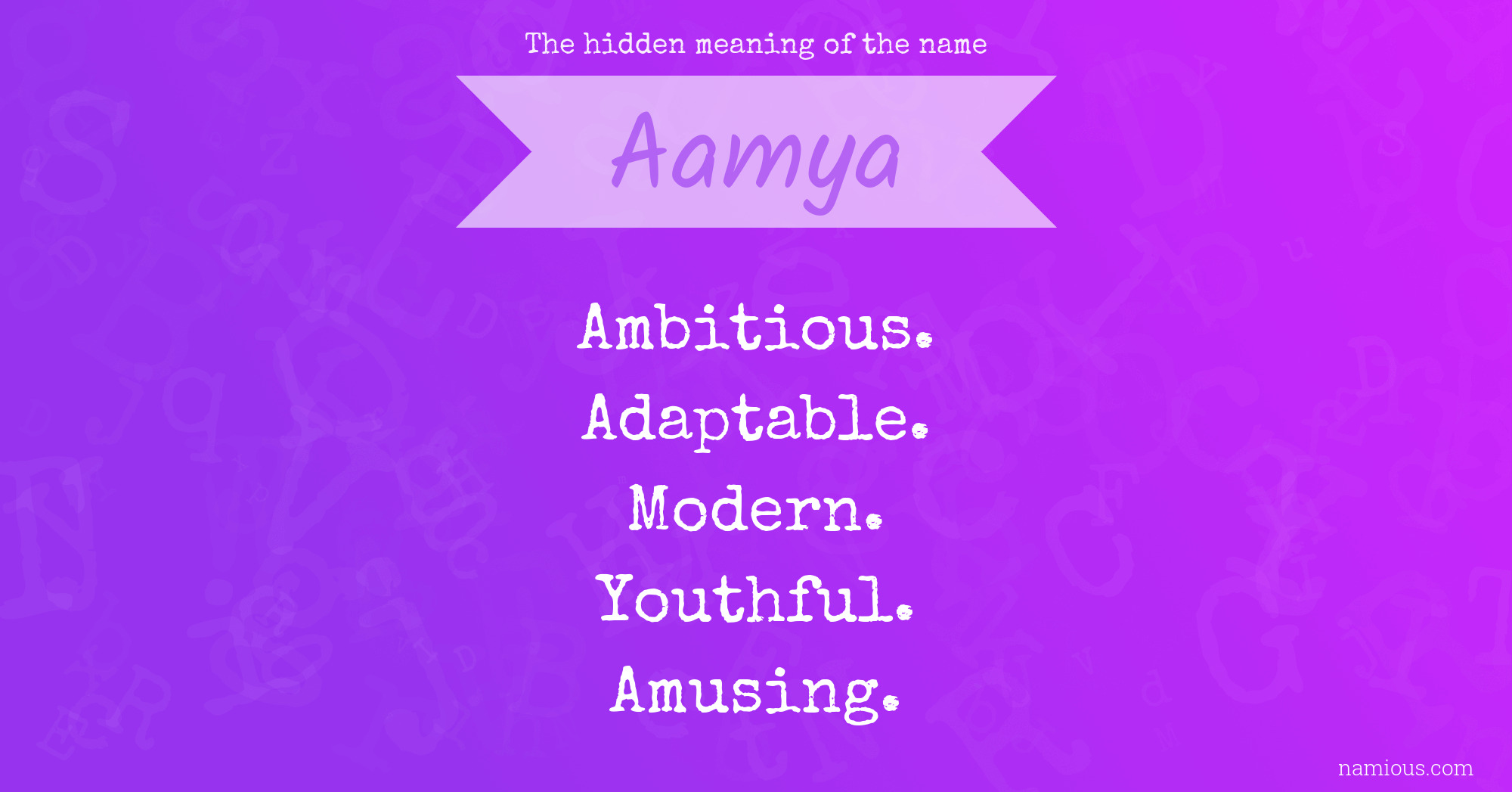 "Aamya is an ambitious, adaptable, modern, youthful and amusing person."