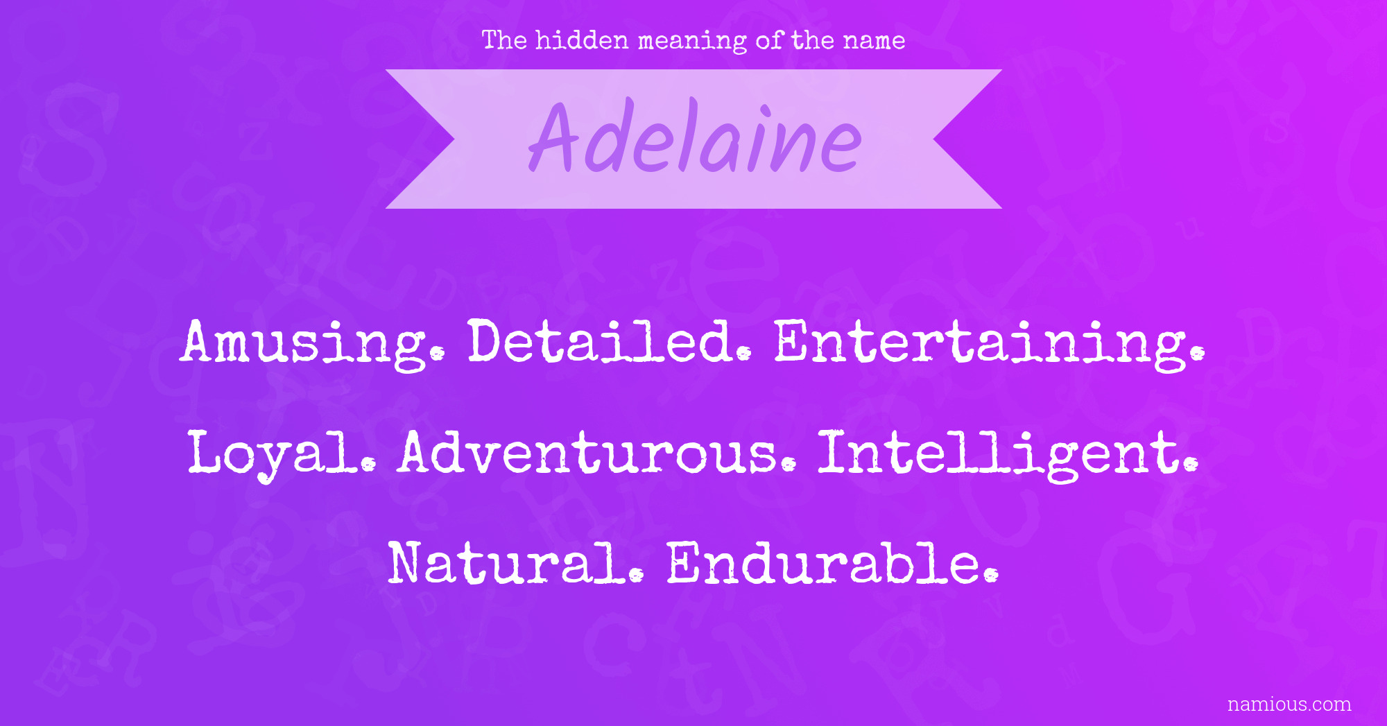 "Adelaine is an amusing, detailed, entertaining, loyal, adventurous, intelligent, natural and endurable person."