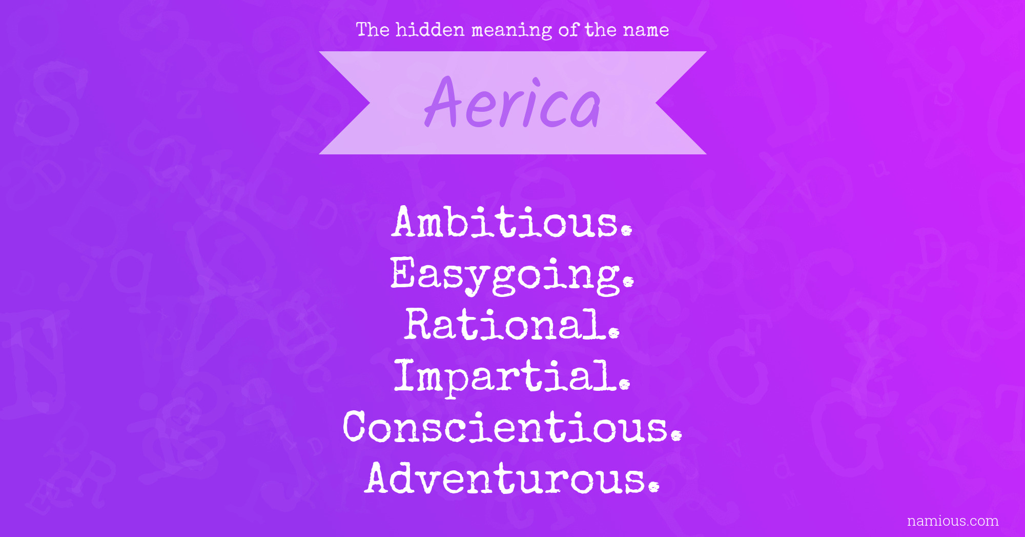 "Aerica is an ambitious, easygoing, rational, impartial, conscientious and adventurous person."