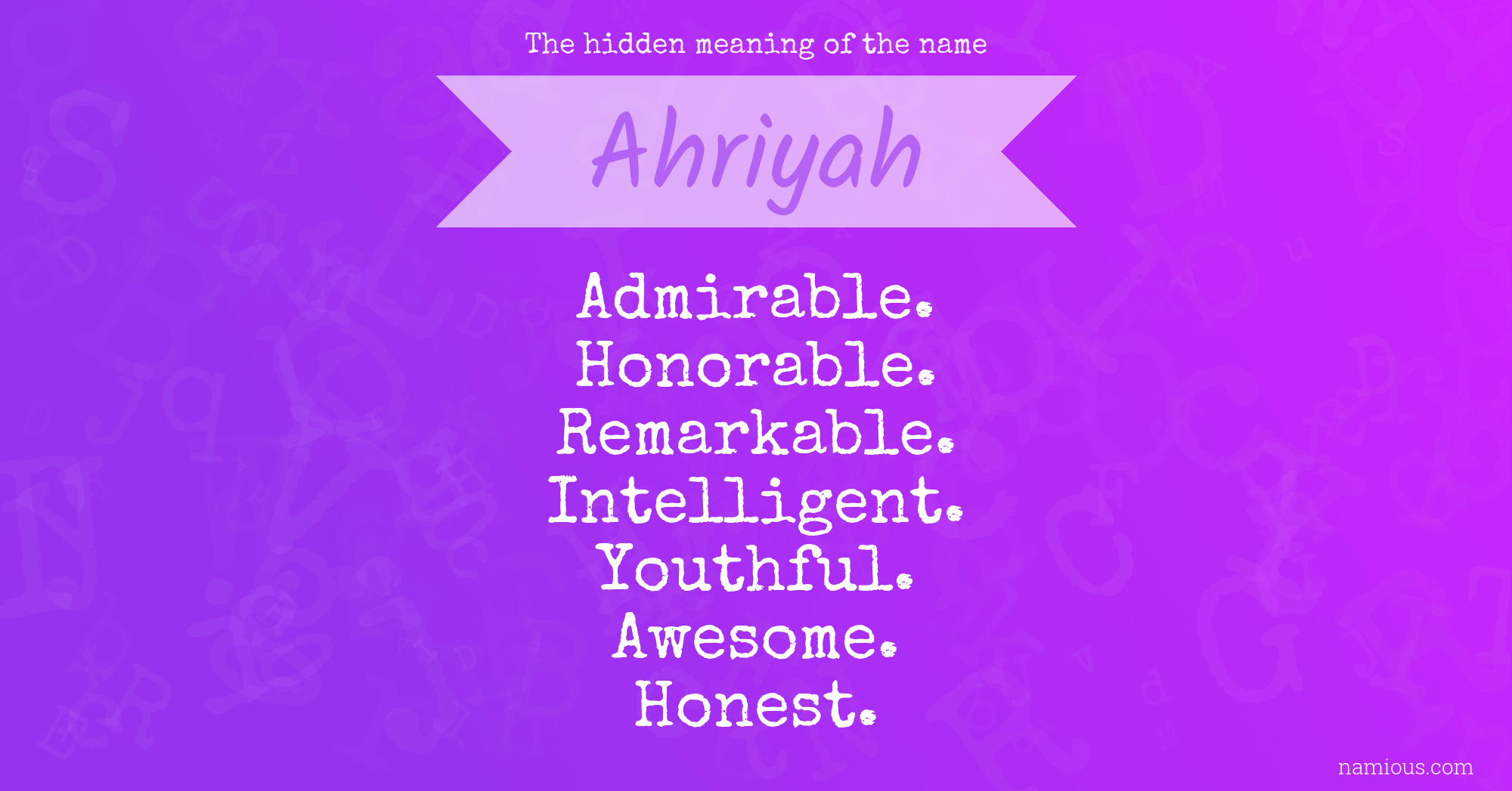 "Ahriyah is an admirable, honorable, remarkable, intelligent, youthful, awesome and honest person."