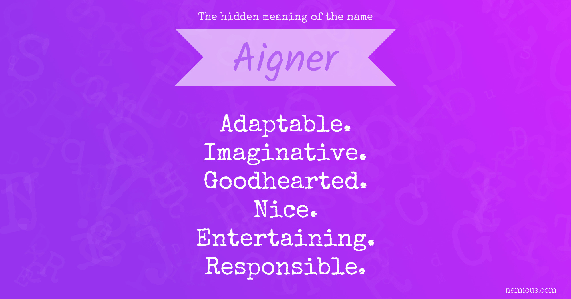 "Aigner is an adaptable, imaginative, goodhearted, nice, entertaining and responsible person."