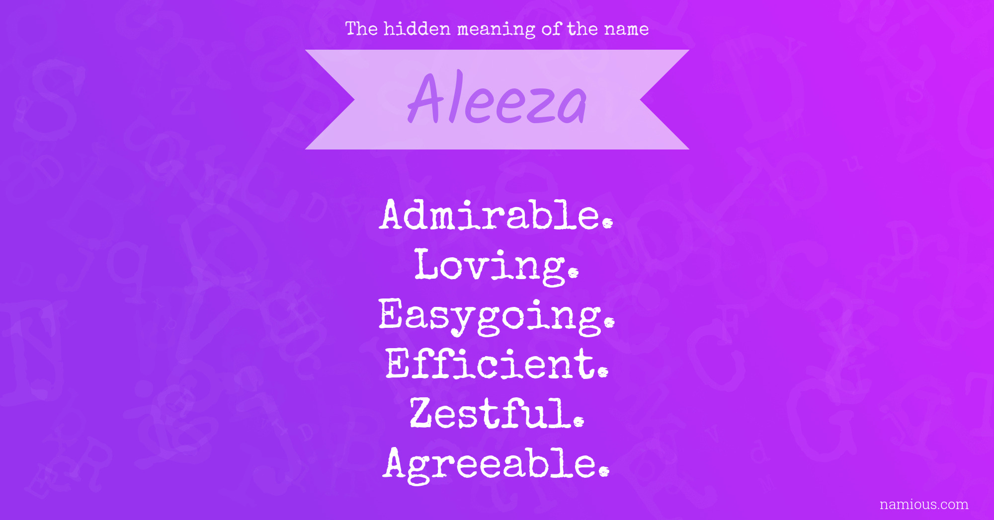 "Aleeza is an admirable, loving, easygoing, efficient, zestful and agreeable person."