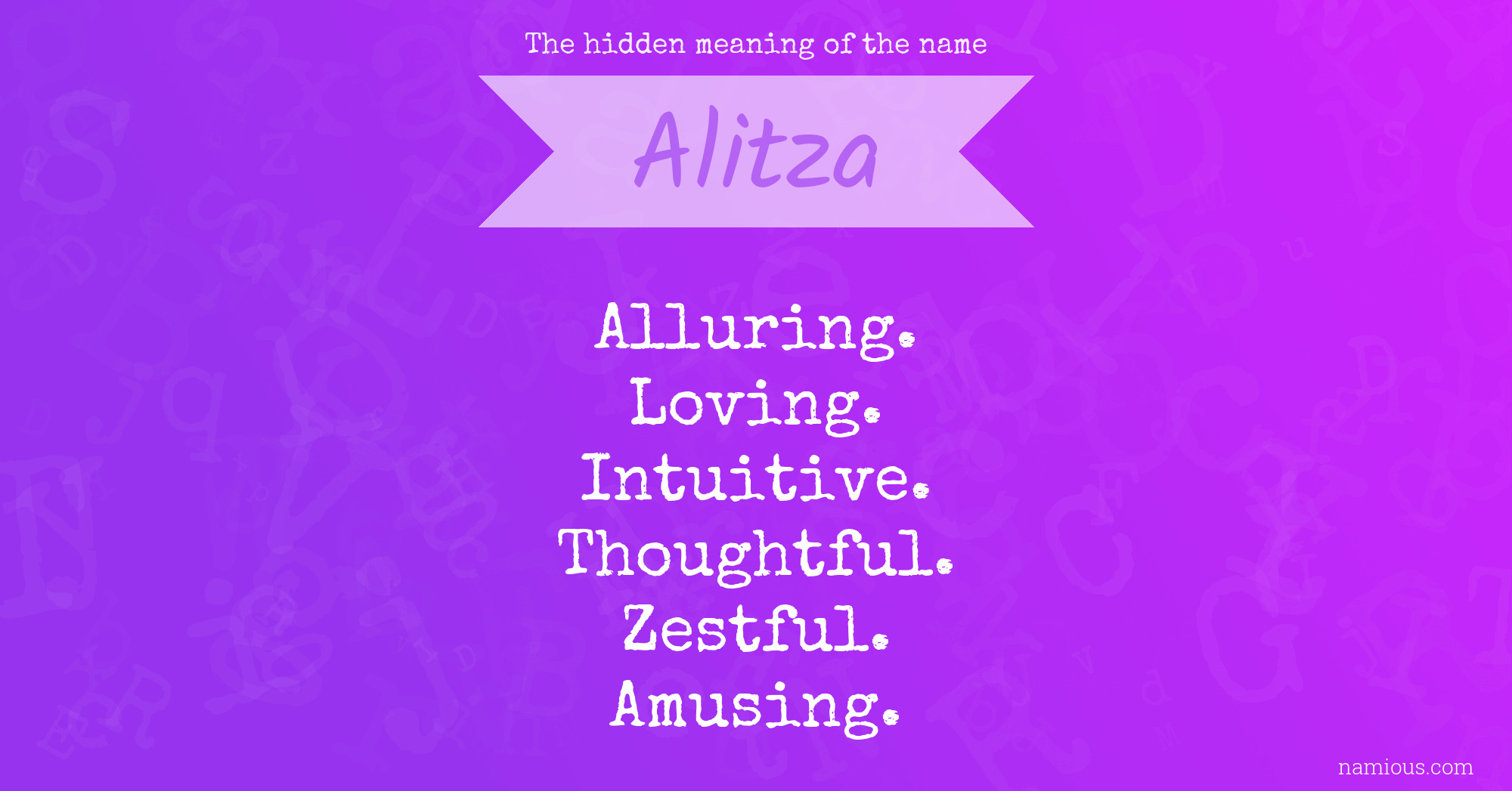 "Alitza is an alluring, loving, intuitive, thoughtful, zestful and amusing person."