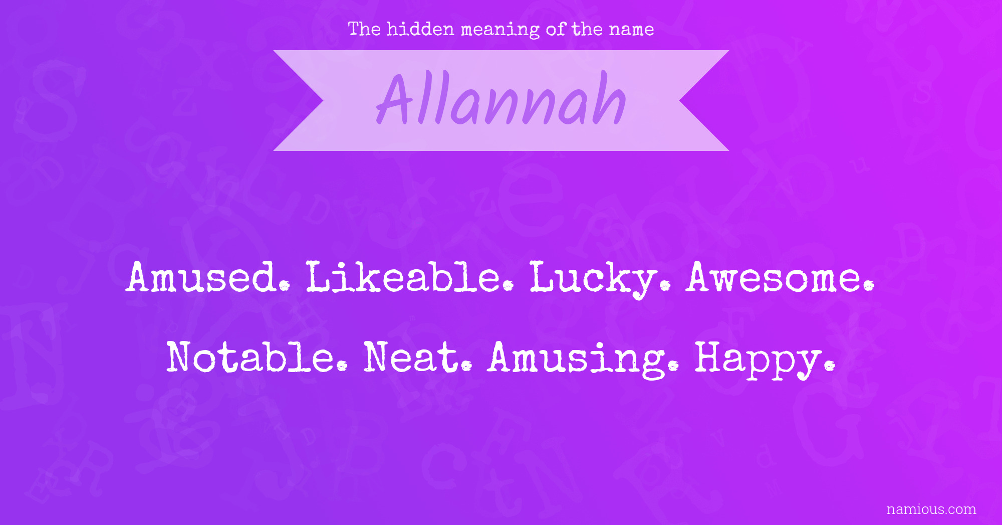 "Allannah is an amused, likeable, lucky, awesome, notable, neat, amusing and happy person."