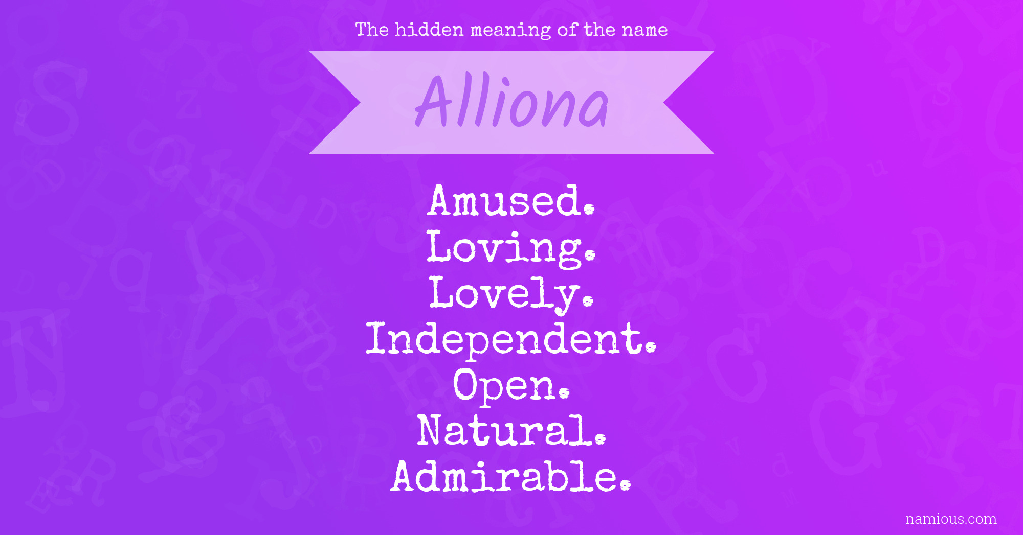 "Alliona is an amused, loving, lovely, independent, open, natural and admirable person."