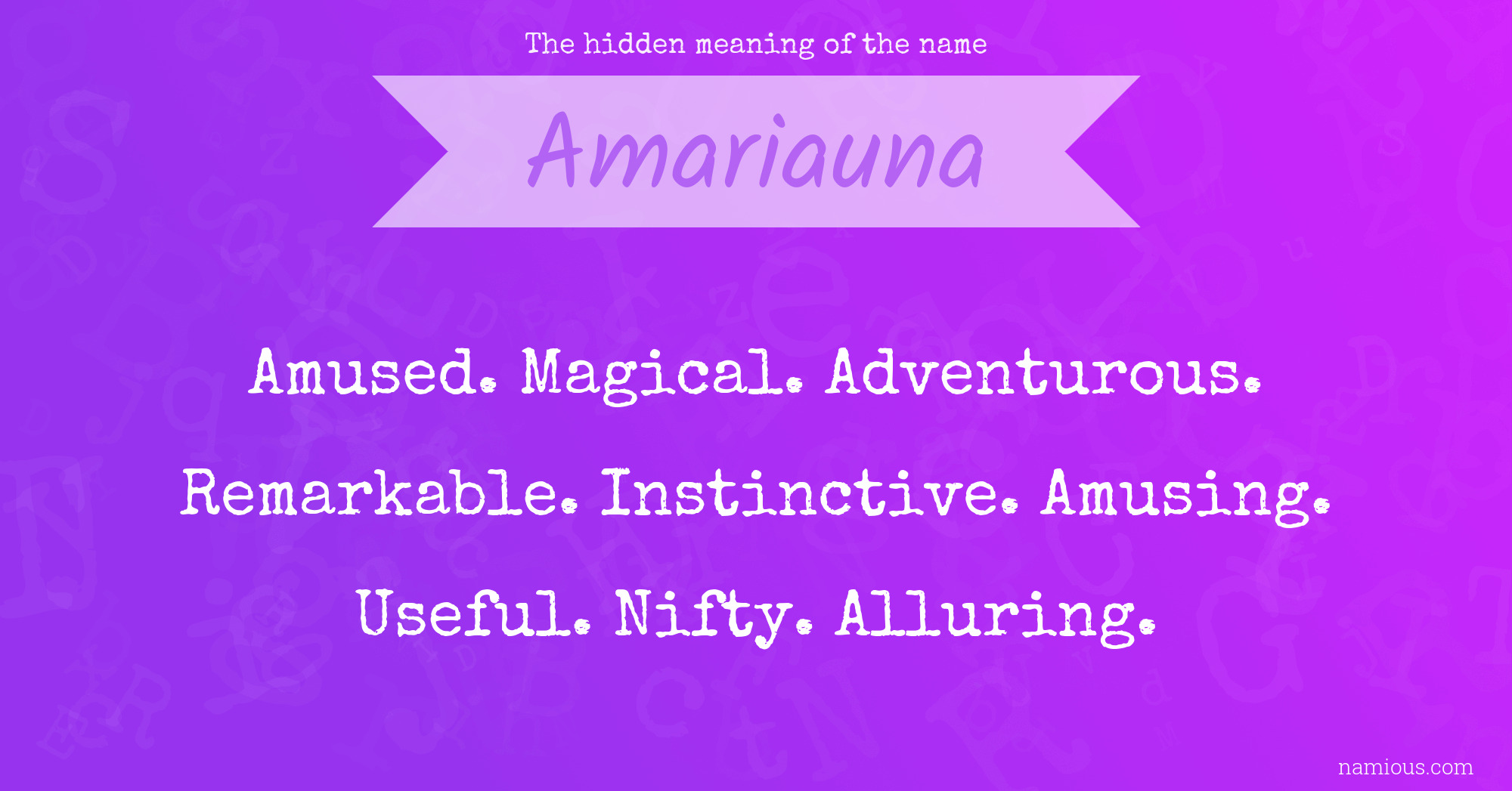 "Amariauna is an amused, magical, adventurous, remarkable, instinctive, amusing, useful, nifty and alluring person."