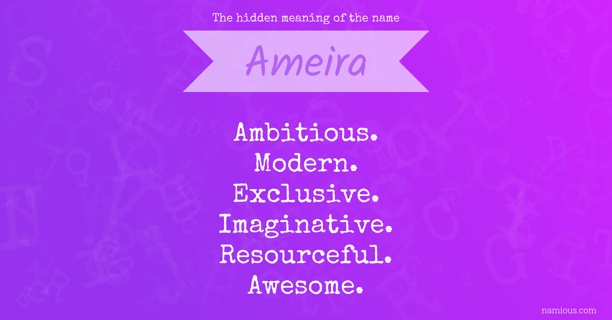 "Ameira is an ambitious, modern, exclusive, imaginative, resourceful and awesome person."