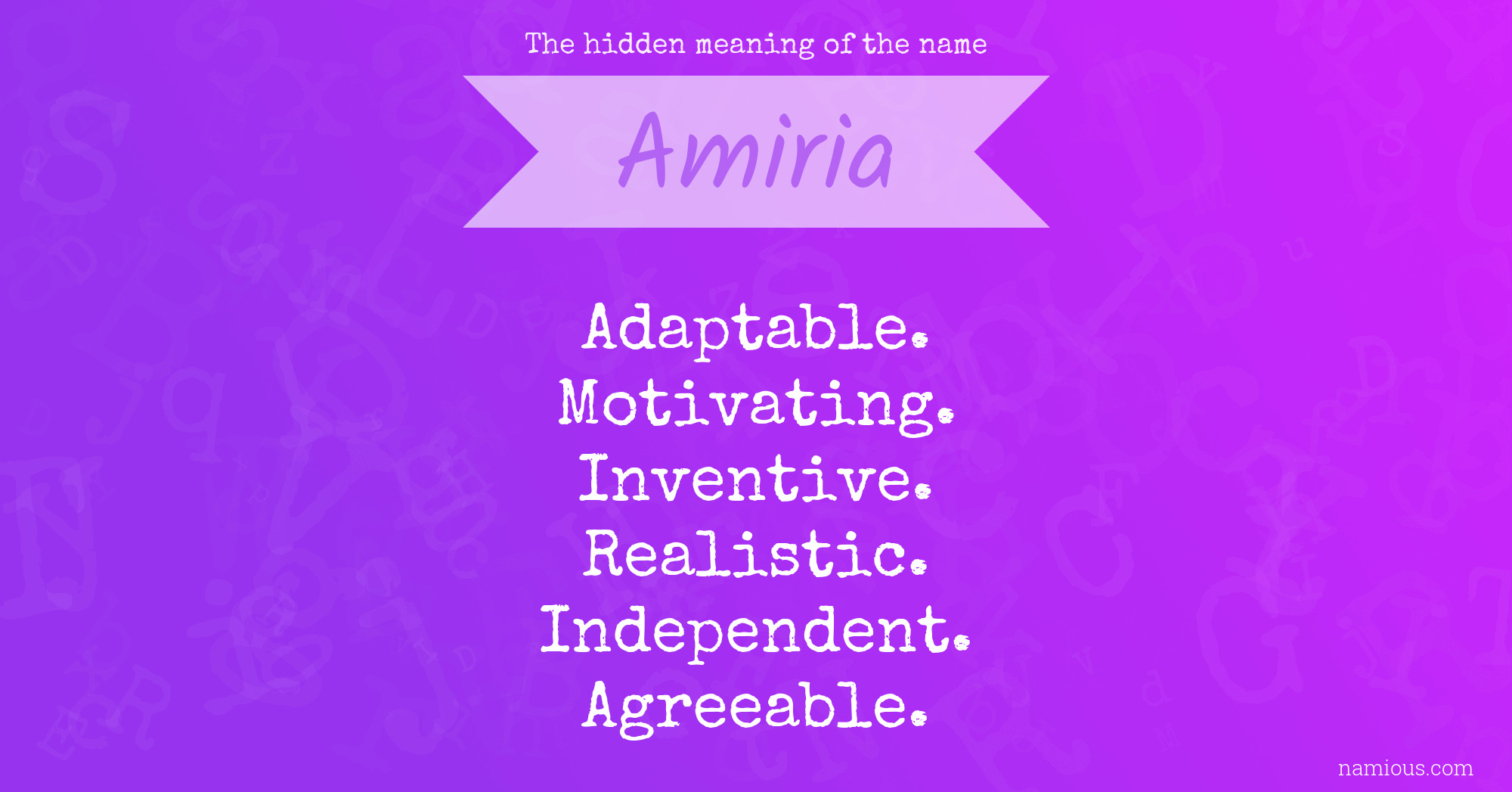 "Amiria is an adaptable, motivating, inventive, realistic, independent and agreeable person."