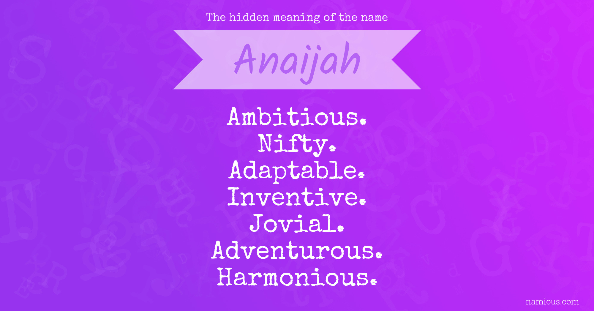 "Anaijah is an ambitious, nifty, adaptable, inventive, jovial, adventurous and harmonious person."