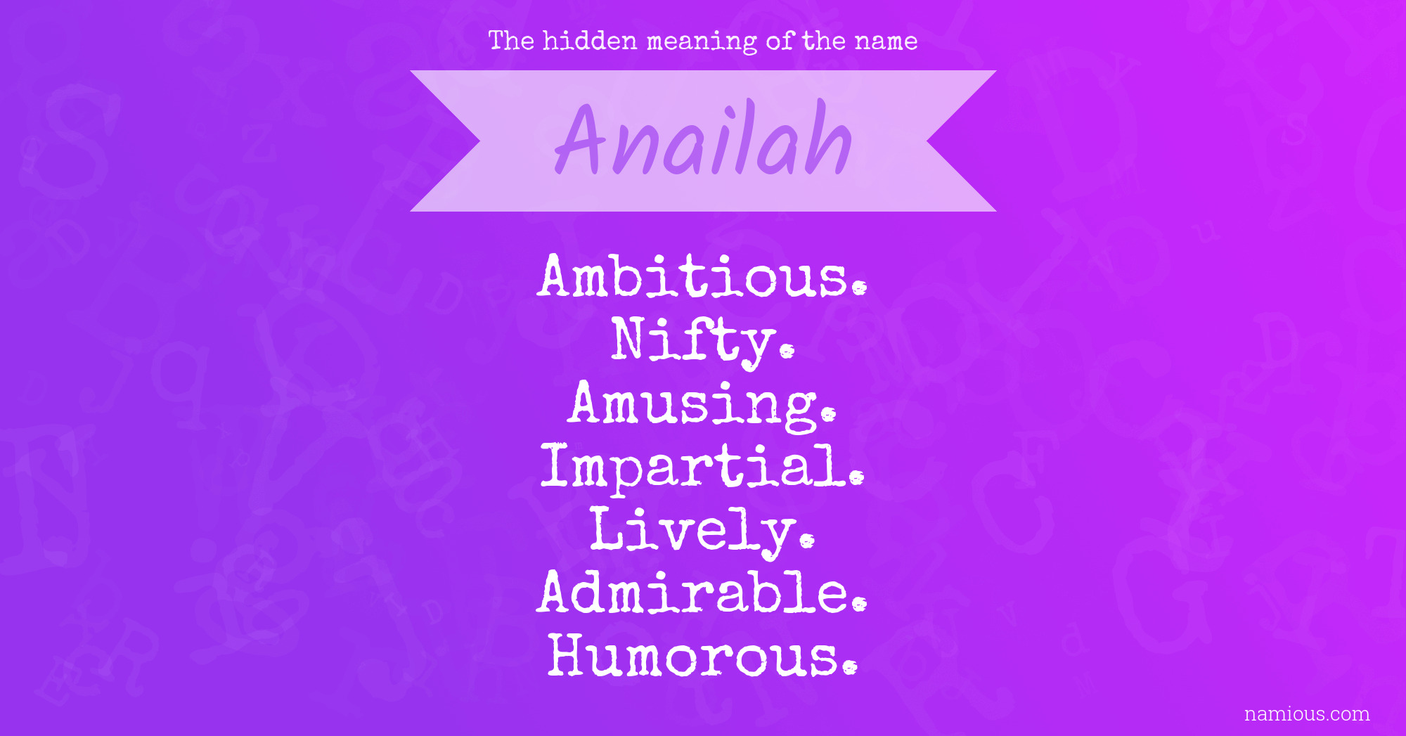 "Anailah is an ambitious, nifty, amusing, impartial, lively, admirable and humorous person."