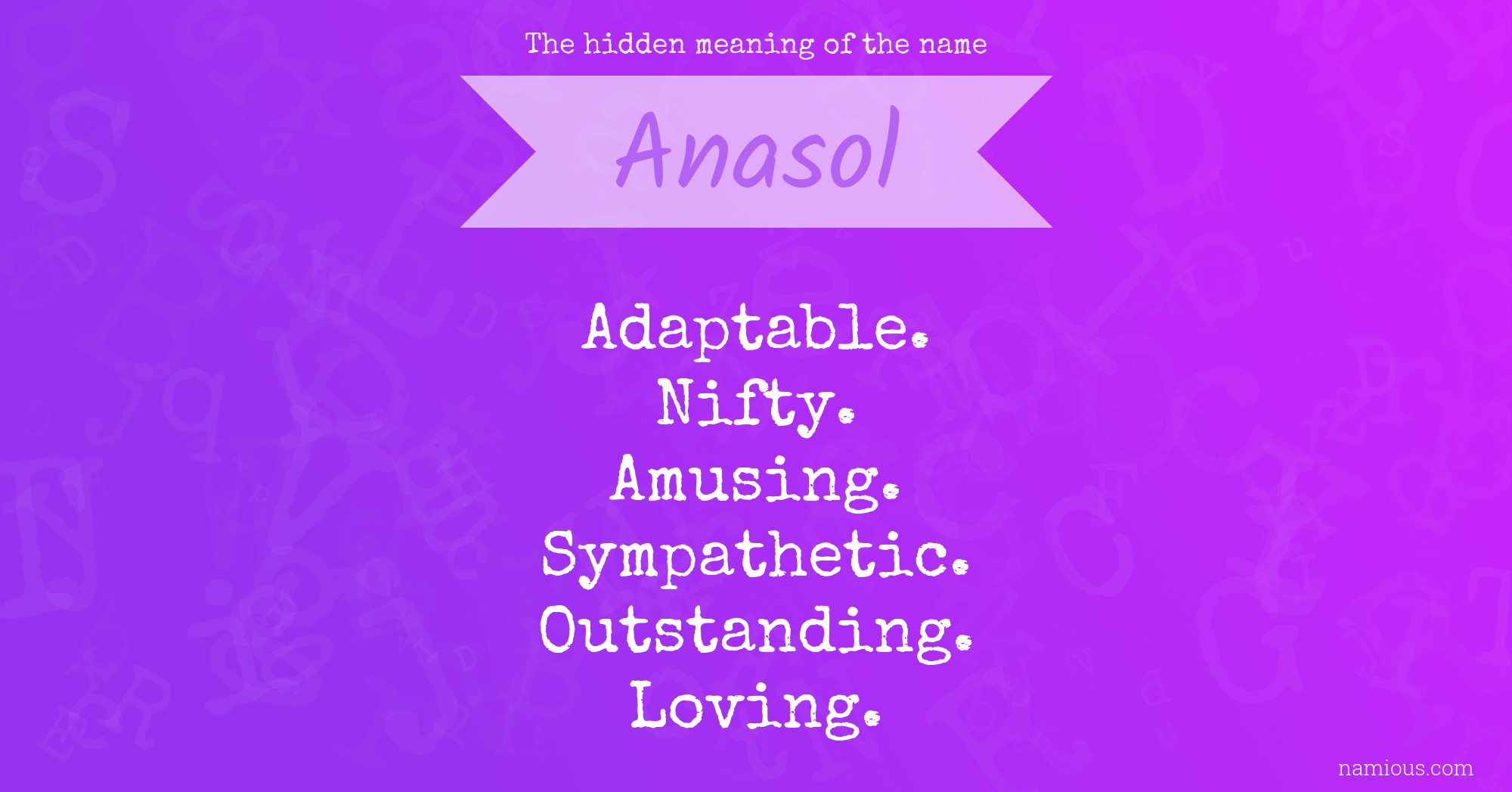 "Anasol is an adaptable, nifty, amusing, sympathetic, outstanding and loving person."