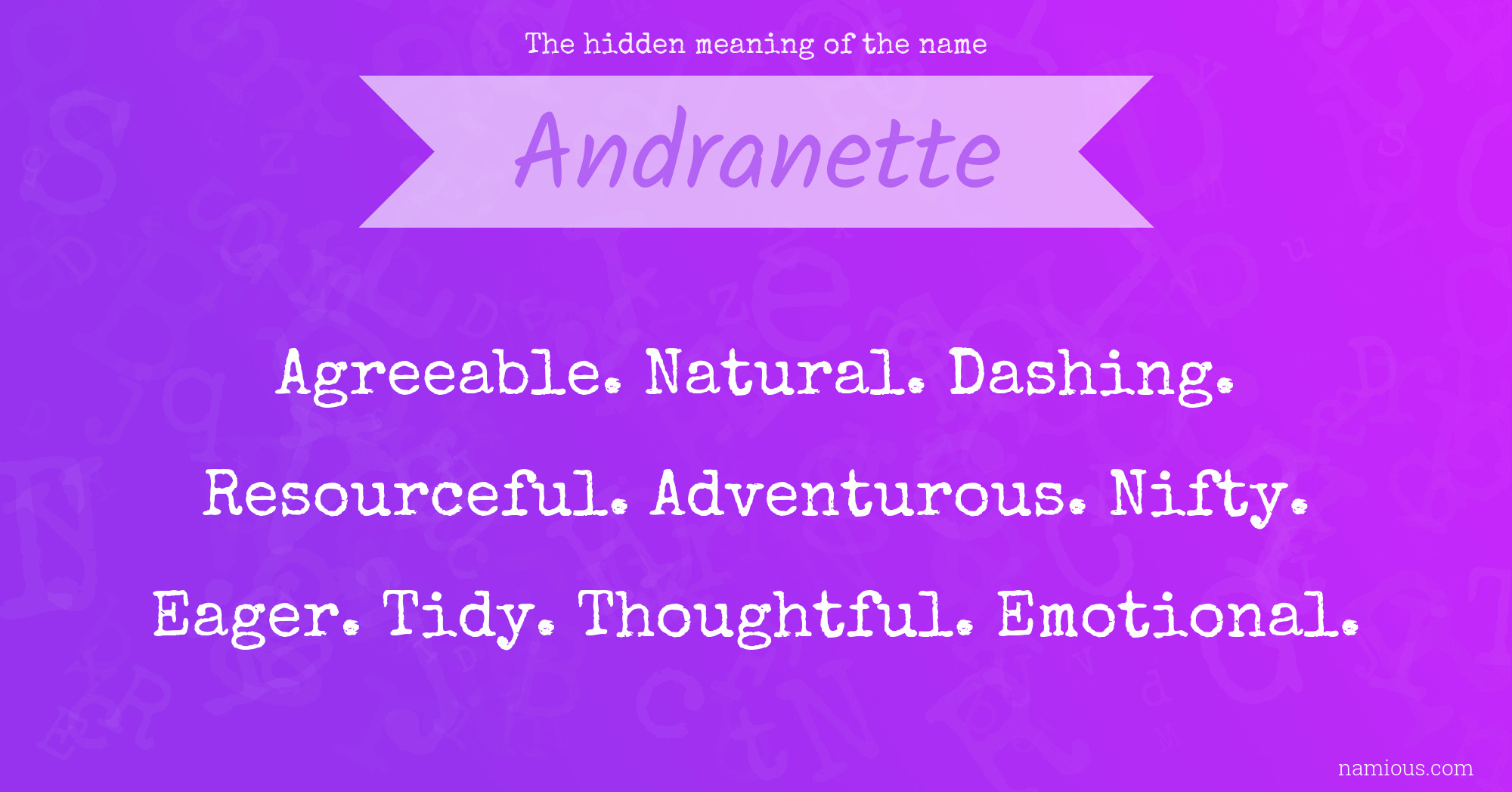 "Andranette is an agreeable, natural, dashing, resourceful, adventurous, nifty, eager, tidy, thoughtful and emotional person."