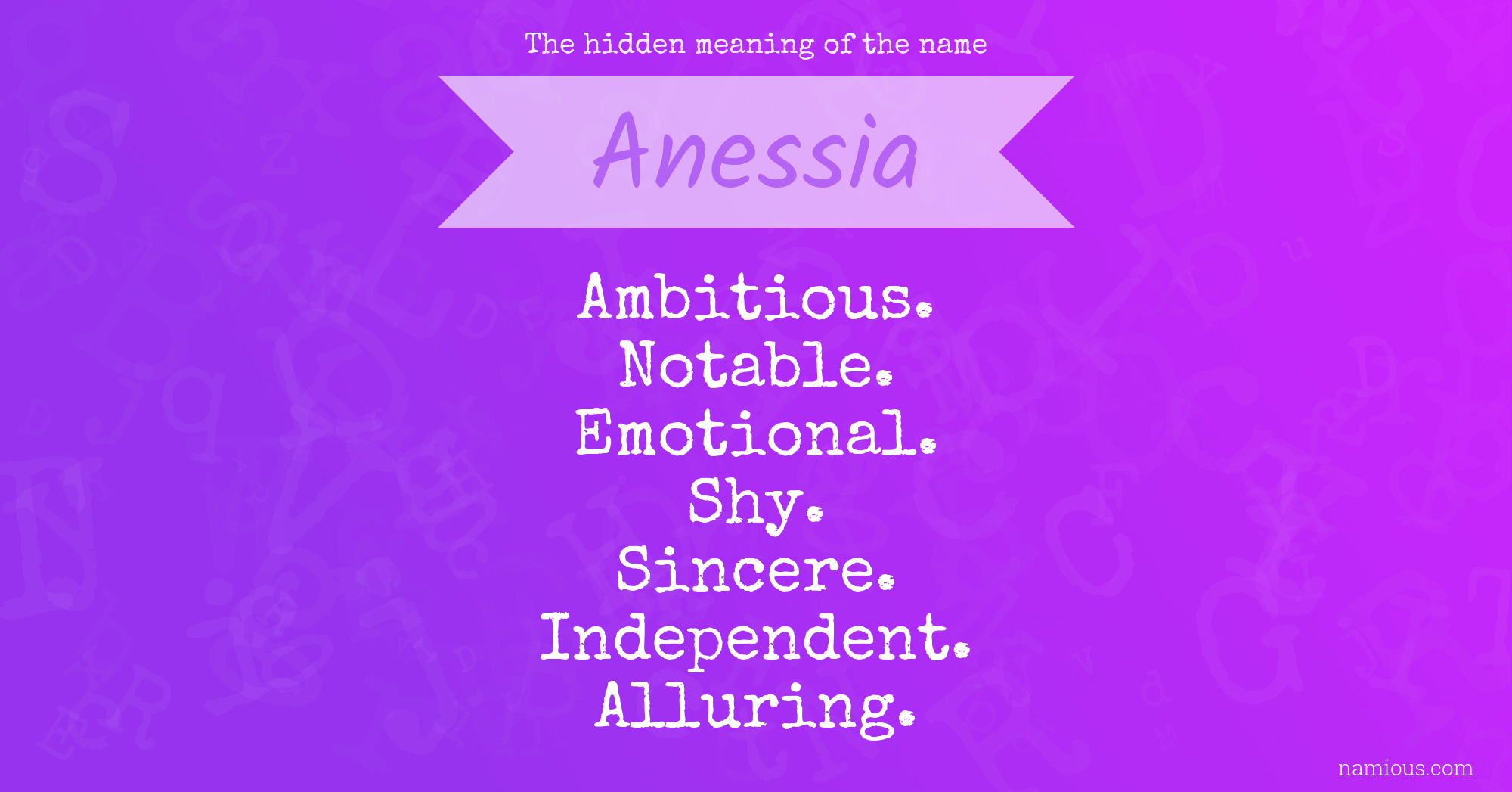 "Anessia is an ambitious, notable, emotional, shy, sincere, independent and alluring person."