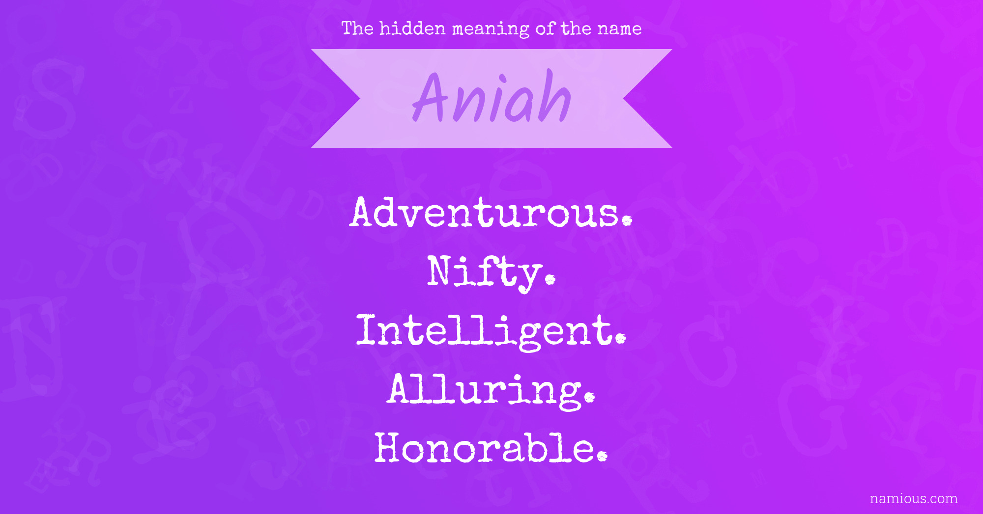 "Aniah is an adventurous, nifty, intelligent, alluring and honorable person."