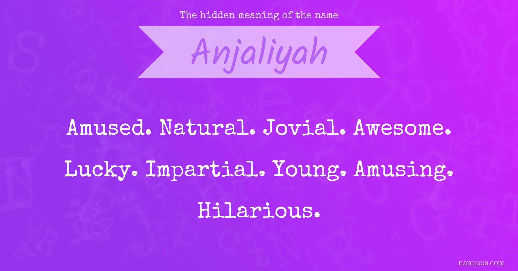 "Anjaliyah is an amused, natural, jovial, awesome, lucky, impartial, young, amusing and hilarious person."