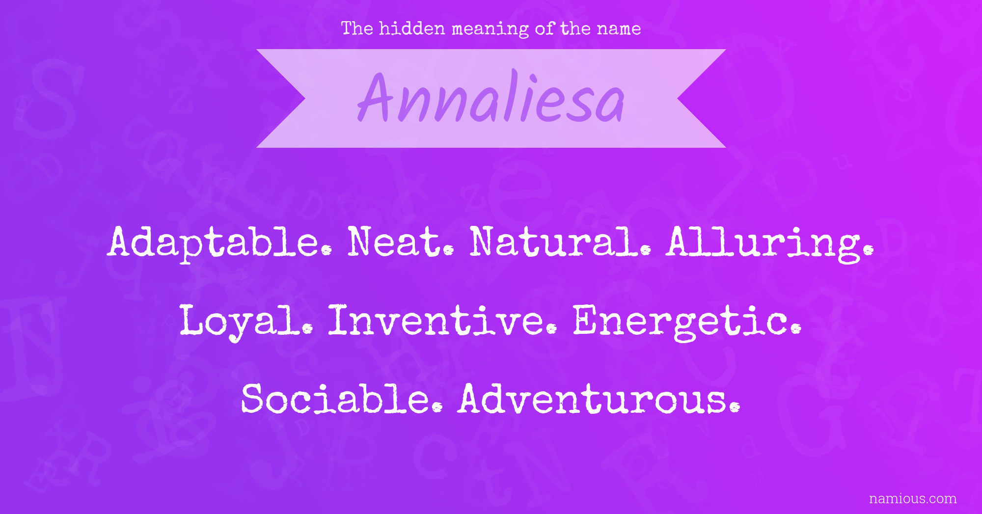 "Annaliesa is an adaptable, neat, natural, alluring, loyal, inventive, energetic, sociable and adventurous person."