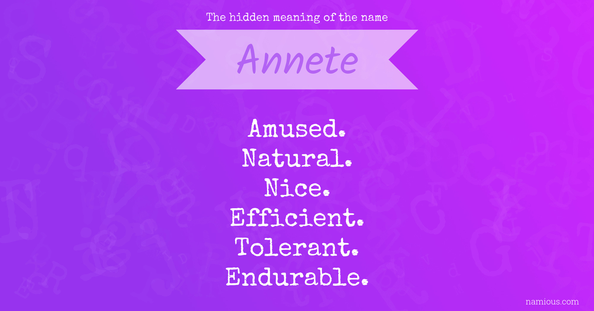 "Annete is an amused, natural, nice, efficient, tolerant and endurable person."