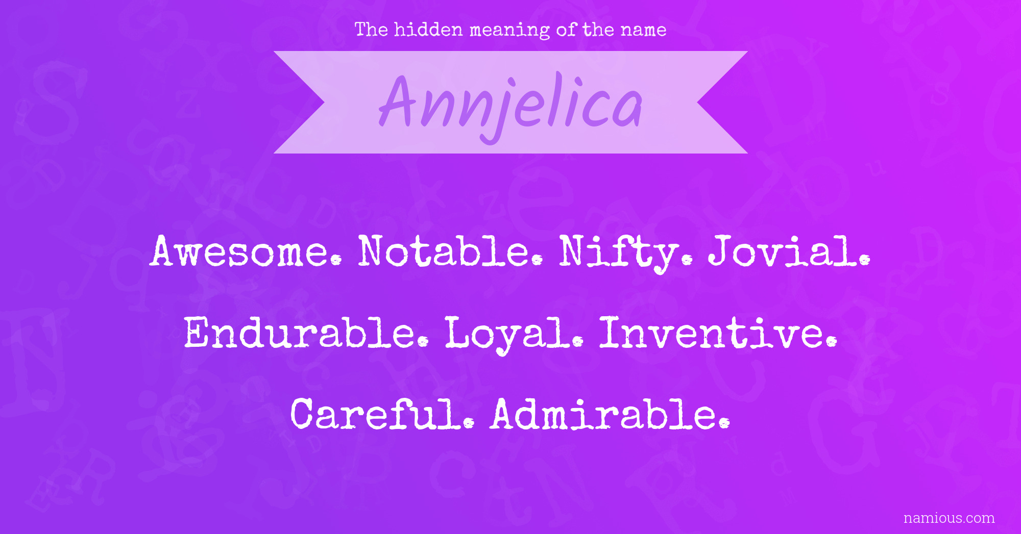 "Annjelica is an awesome, notable, nifty, jovial, endurable, loyal, inventive, careful and admirable person."