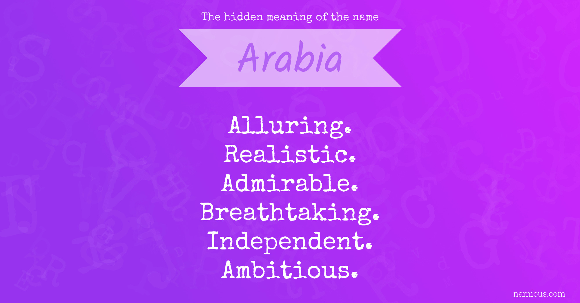 "Arabia is an alluring, realistic, admirable, breathtaking, independent and ambitious person."