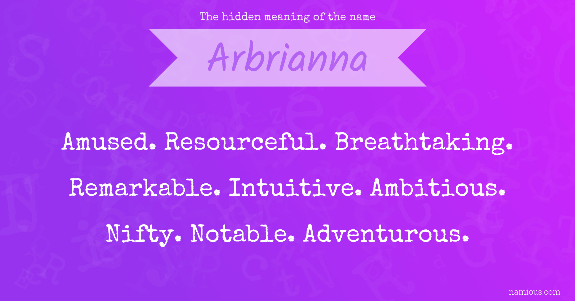 "Arbrianna is an amused, resourceful, breathtaking, remarkable, intuitive, ambitious, nifty, notable and adventurous person."