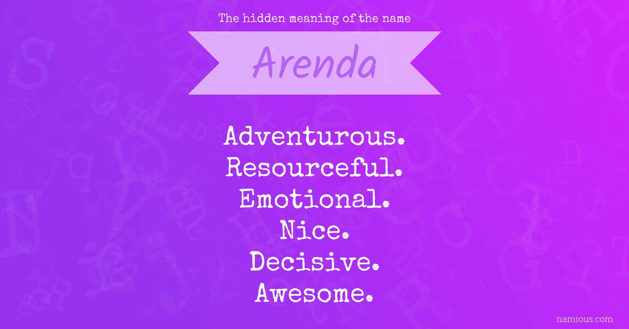 "Arenda is an adventurous, resourceful, emotional, nice, decisive and awesome person."