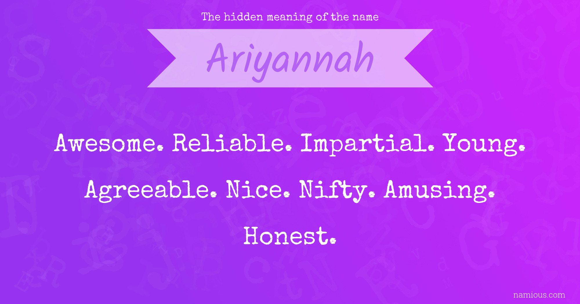 "Ariyannah is an awesome, reliable, impartial, young, agreeable, nice, nifty, amusing and honest person."