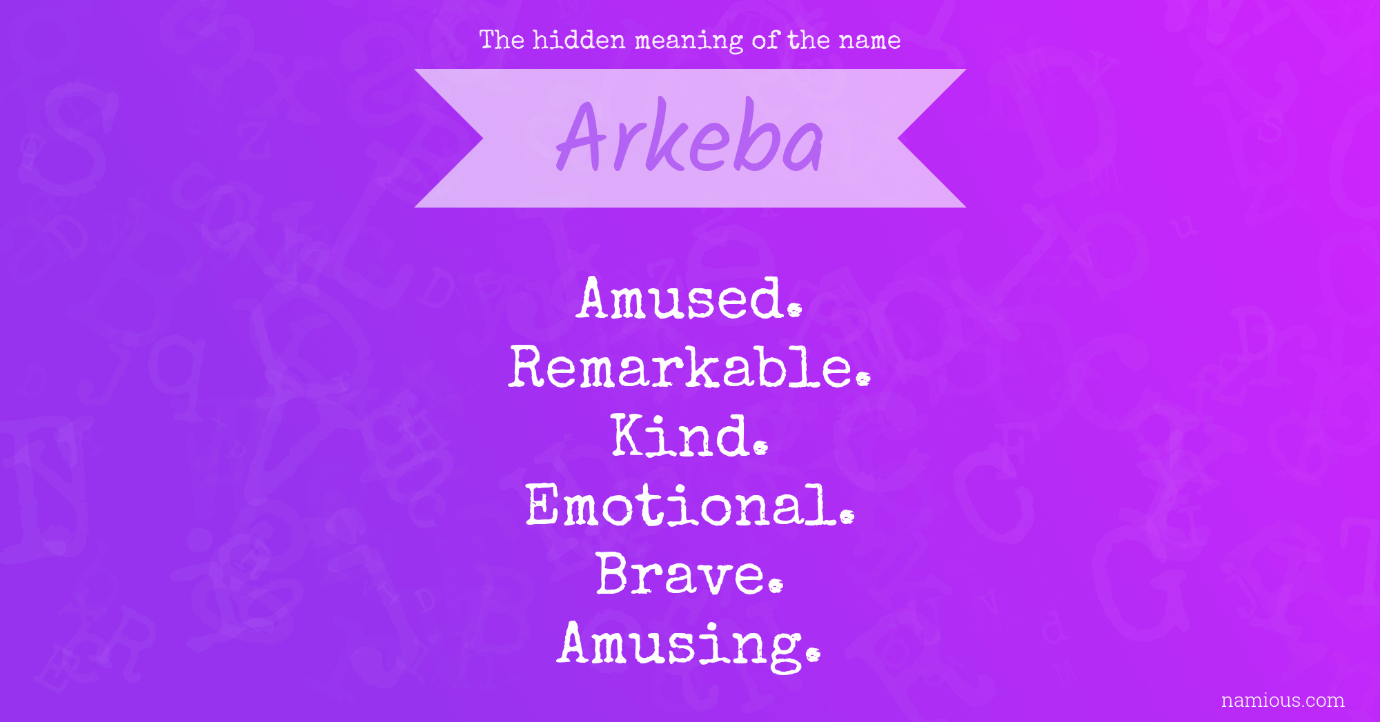 "Arkeba is an amused, remarkable, kind, emotional, brave and amusing person."