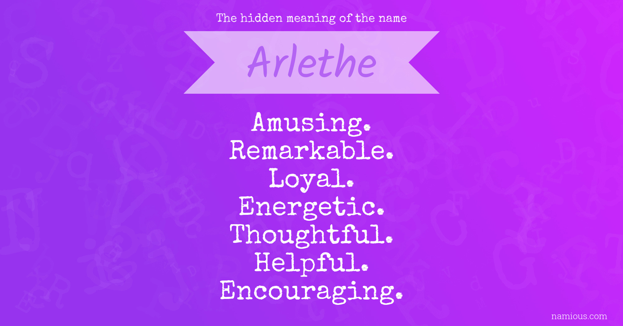 "Arlethe is an amusing, remarkable, loyal, energetic, thoughtful, helpful and encouraging person."