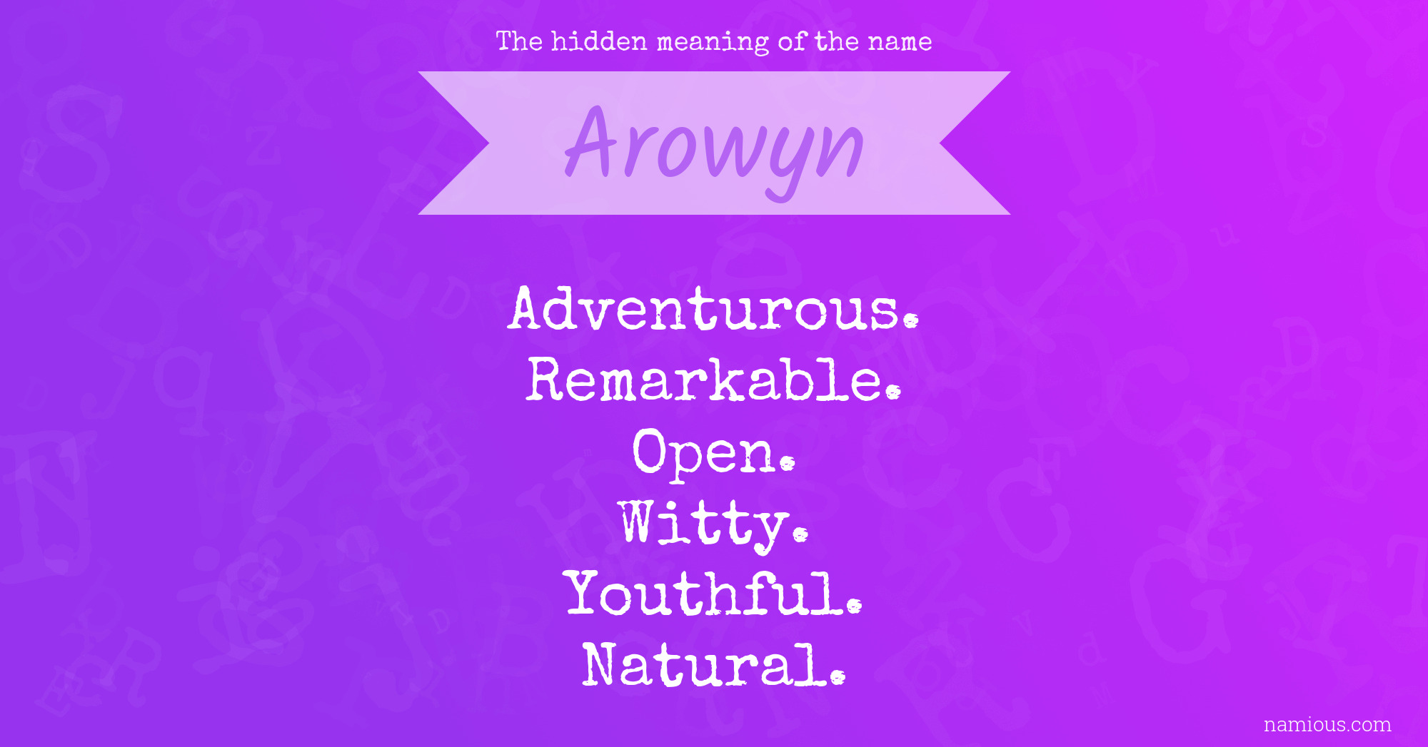 "Arowyn is an adventurous, remarkable, open, witty, youthful and natural person."