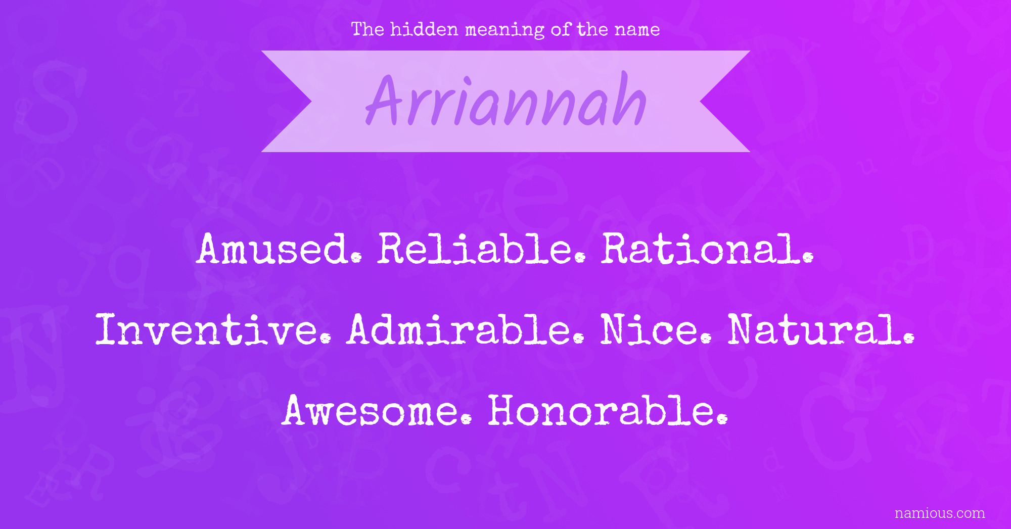 "Arriannah is an amused, reliable, rational, inventive, admirable, nice, natural, awesome and honorable person."