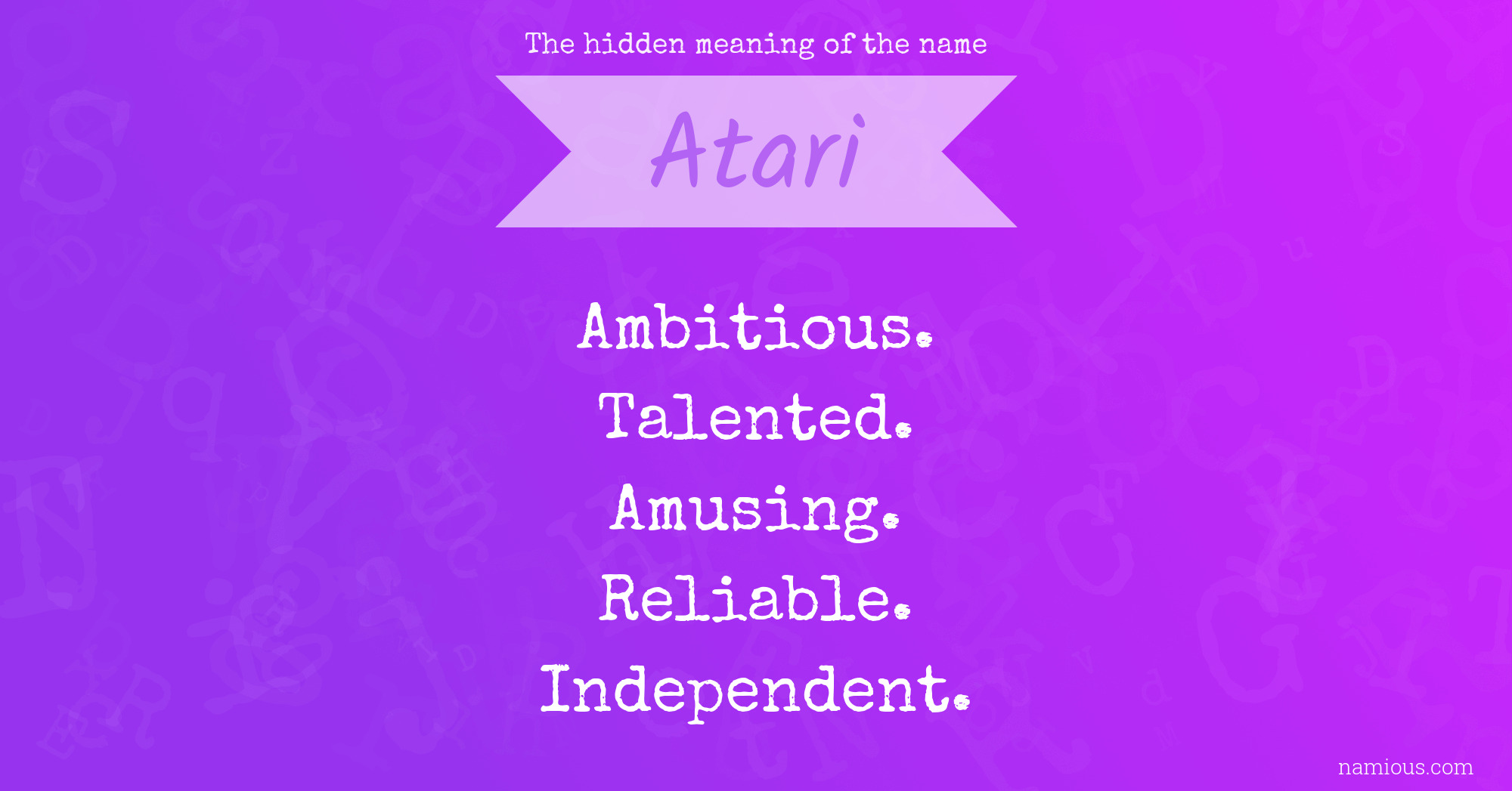 "Atari is an ambitious, talented, amusing, reliable and independent person."