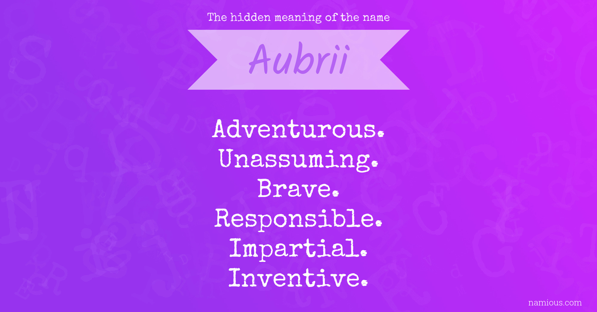 "Aubrii is an adventurous, unassuming, brave, responsible, impartial and inventive person."
