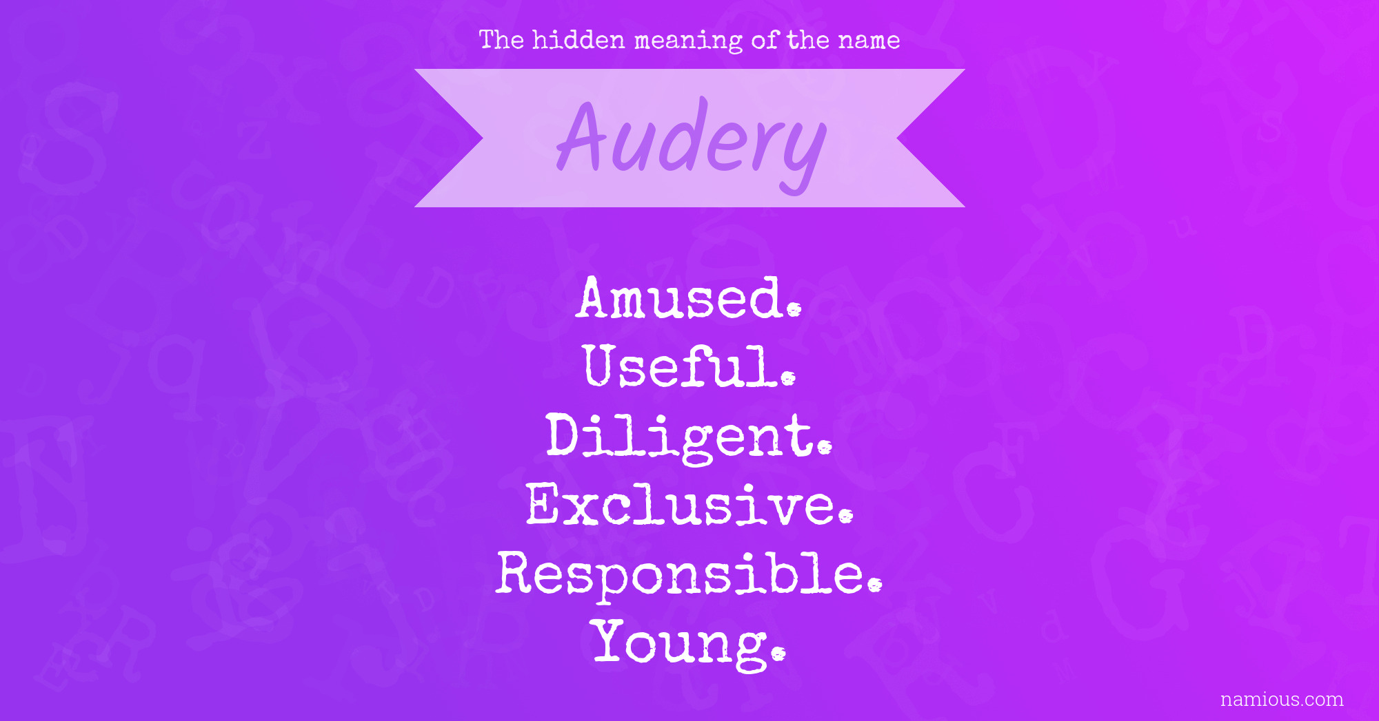 "Audery is an amused, useful, diligent, exclusive, responsible and young person."