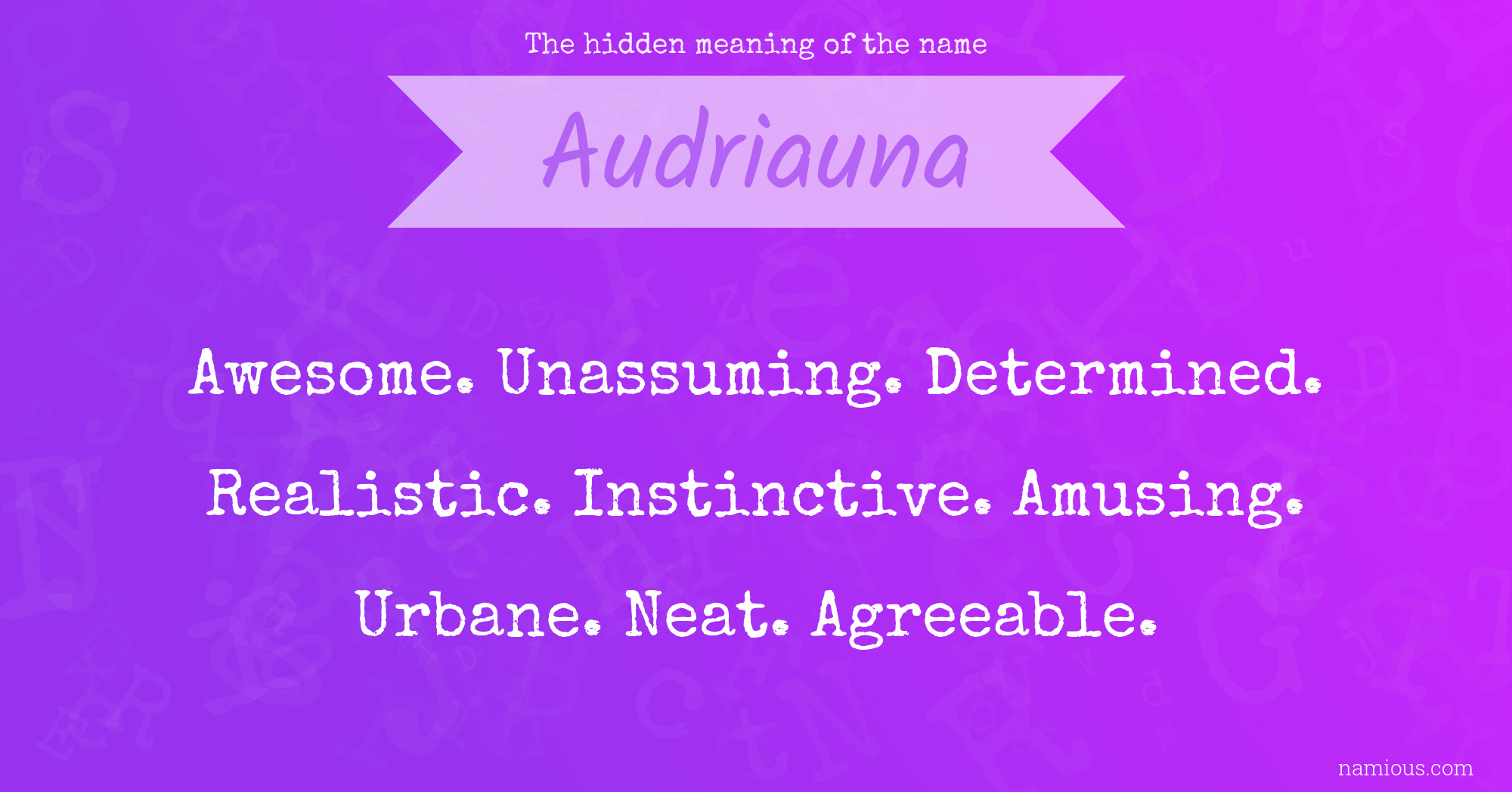 "Audriauna is an awesome, unassuming, determined, realistic, instinctive, amusing, urbane, neat and agreeable person."