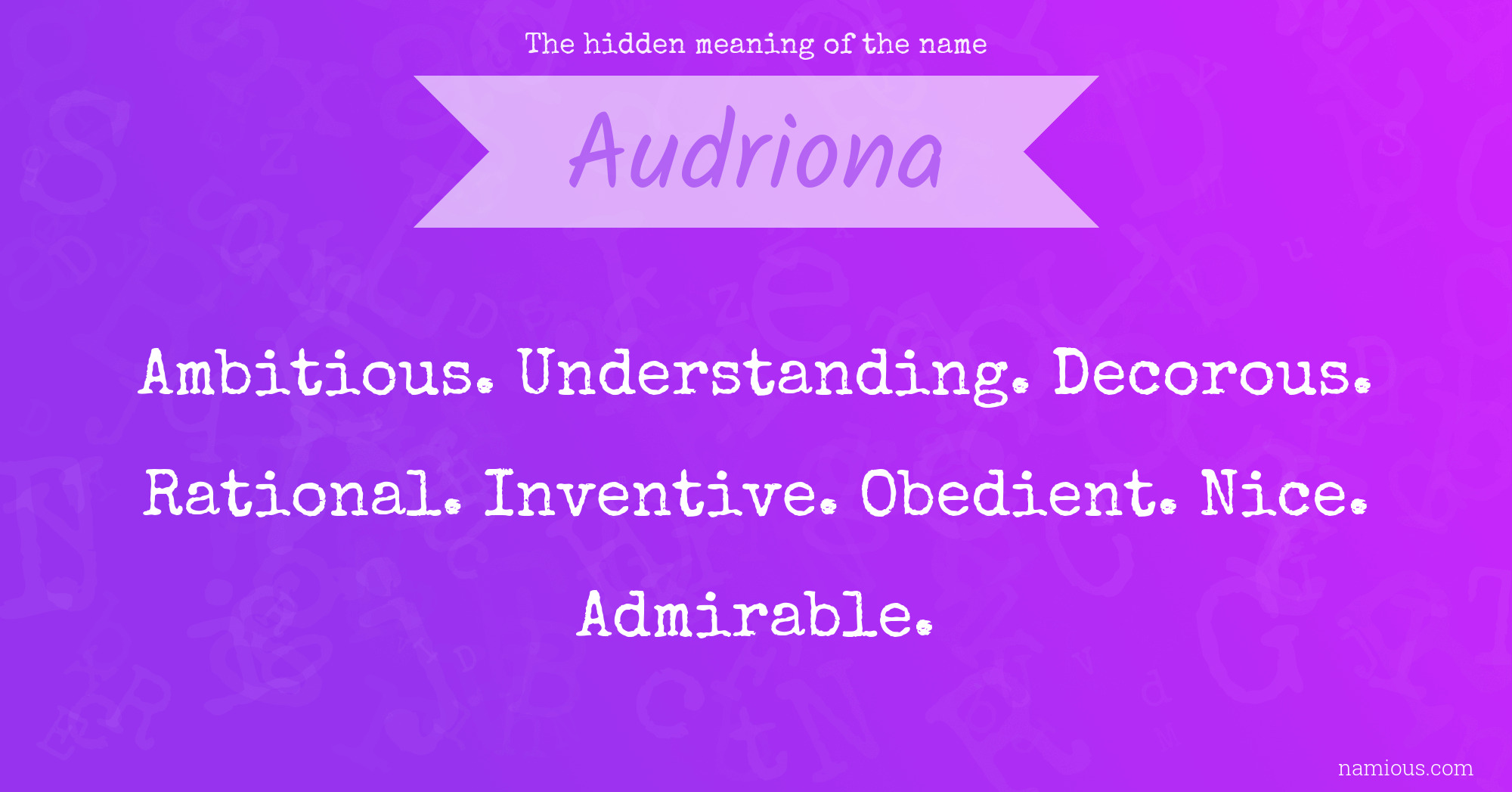 "Audriona is an ambitious, understanding, decorous, rational, inventive, obedient, nice and admirable person."