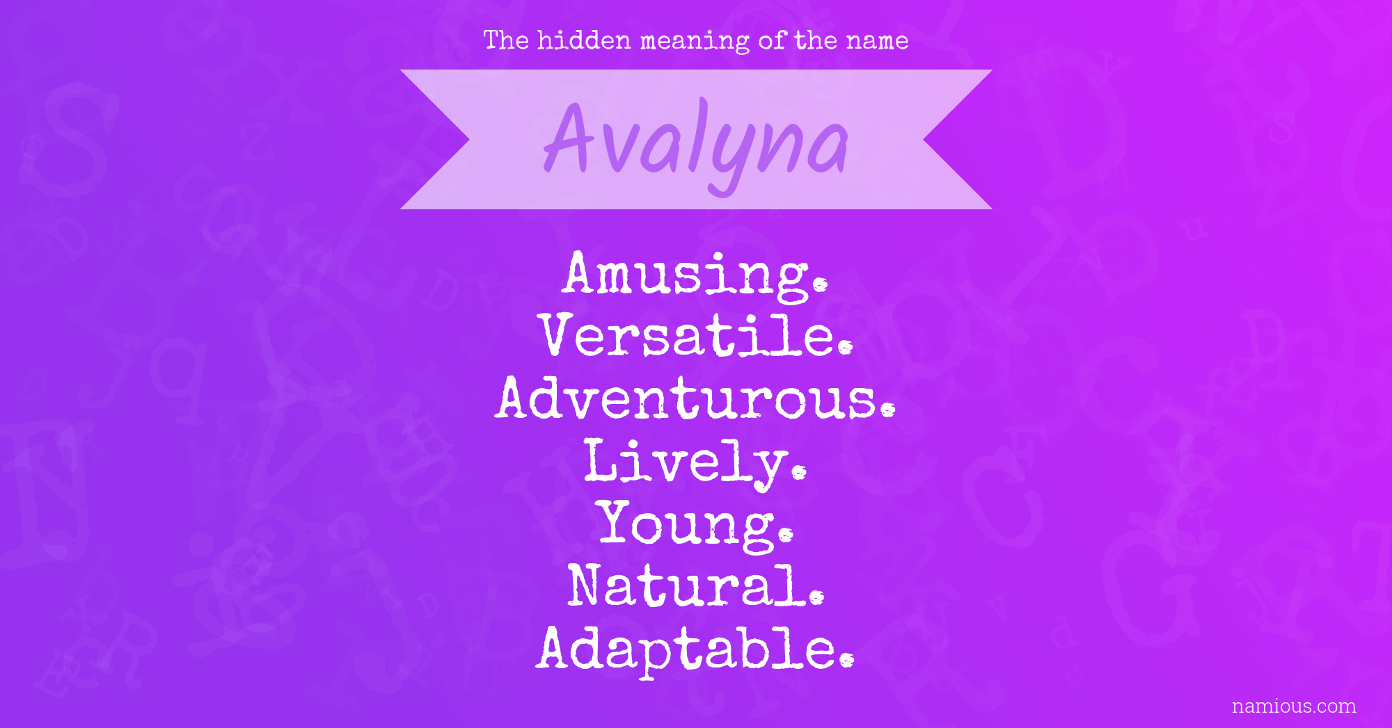 "Avalyna is an amusing, versatile, adventurous, lively, young, natural and adaptable person."