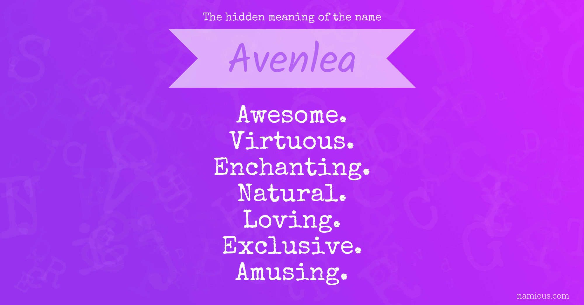"Avenlea is an awesome, virtuous, enchanting, natural, loving, exclusive and amusing person."