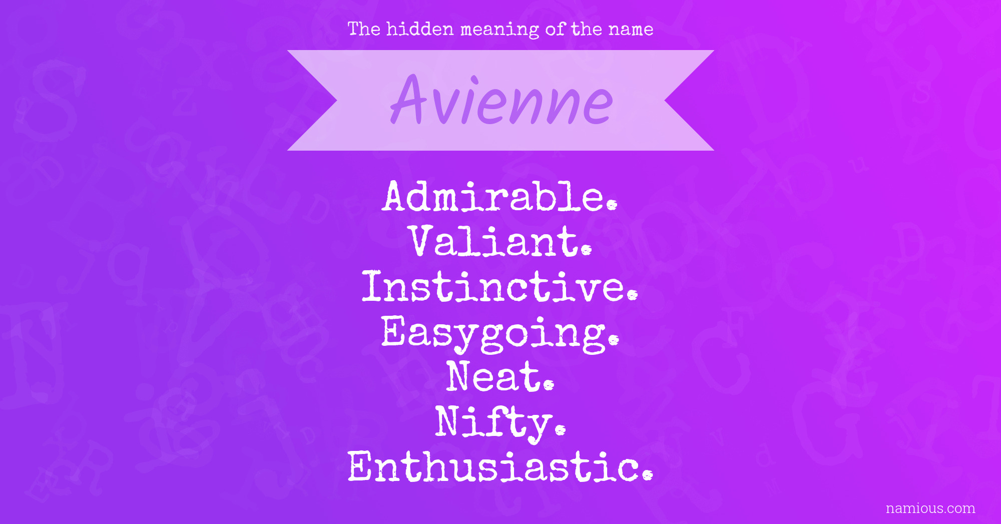 "Avienne is an admirable, valiant, instinctive, easygoing, neat, nifty and enthusiastic person."