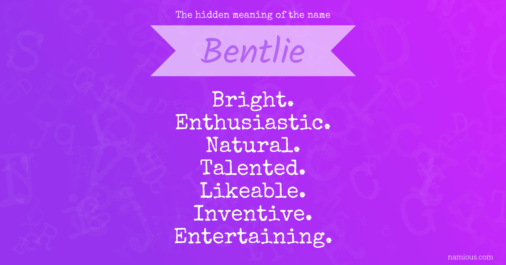"Bentlie is a bright, enthusiastic, natural, talented, likeable, inventive and entertaining person."
