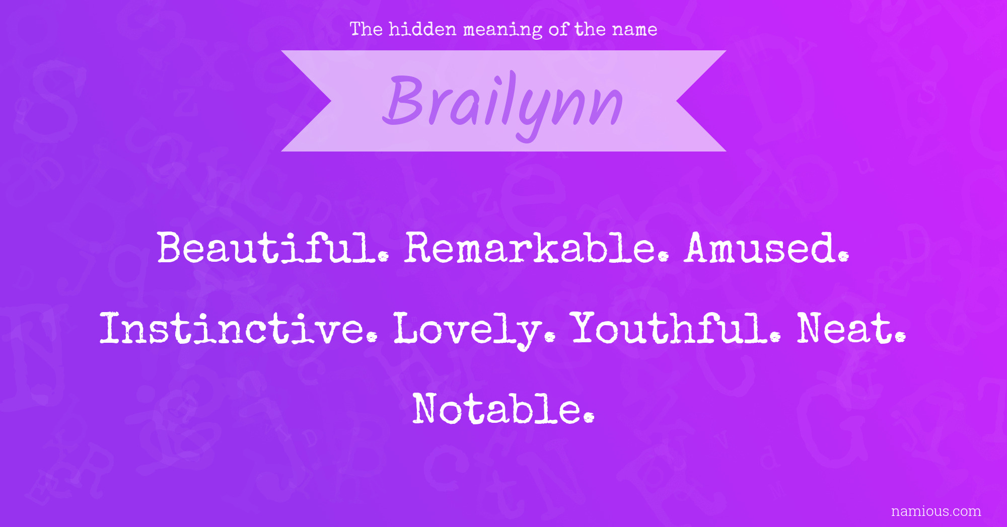 "Brailynn is a beautiful, remarkable, amused, instinctive, lovely, youthful, neat and notable person."