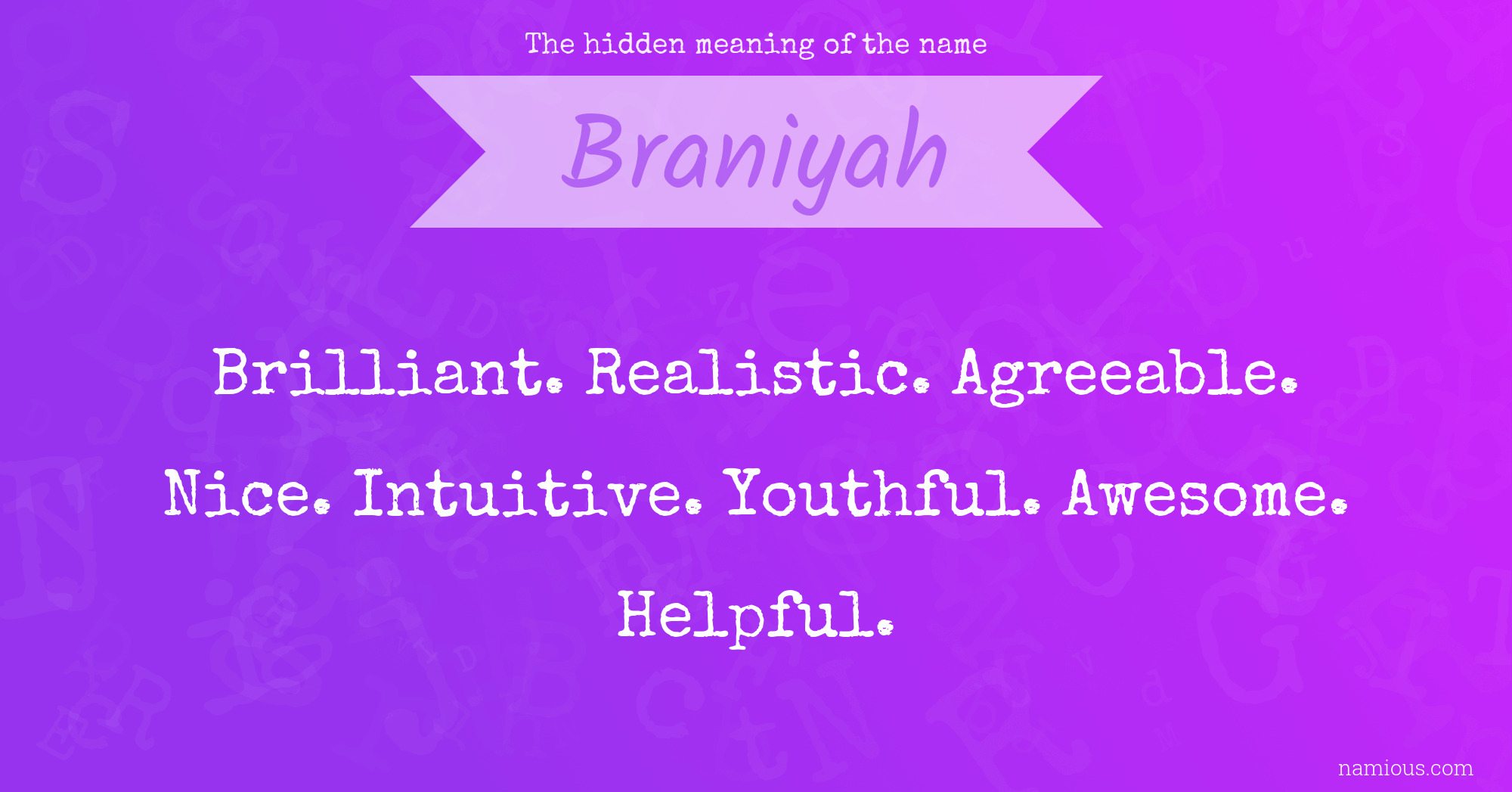 "Braniyah is a brilliant, realistic, agreeable, nice, intuitive, youthful, awesome and helpful person."