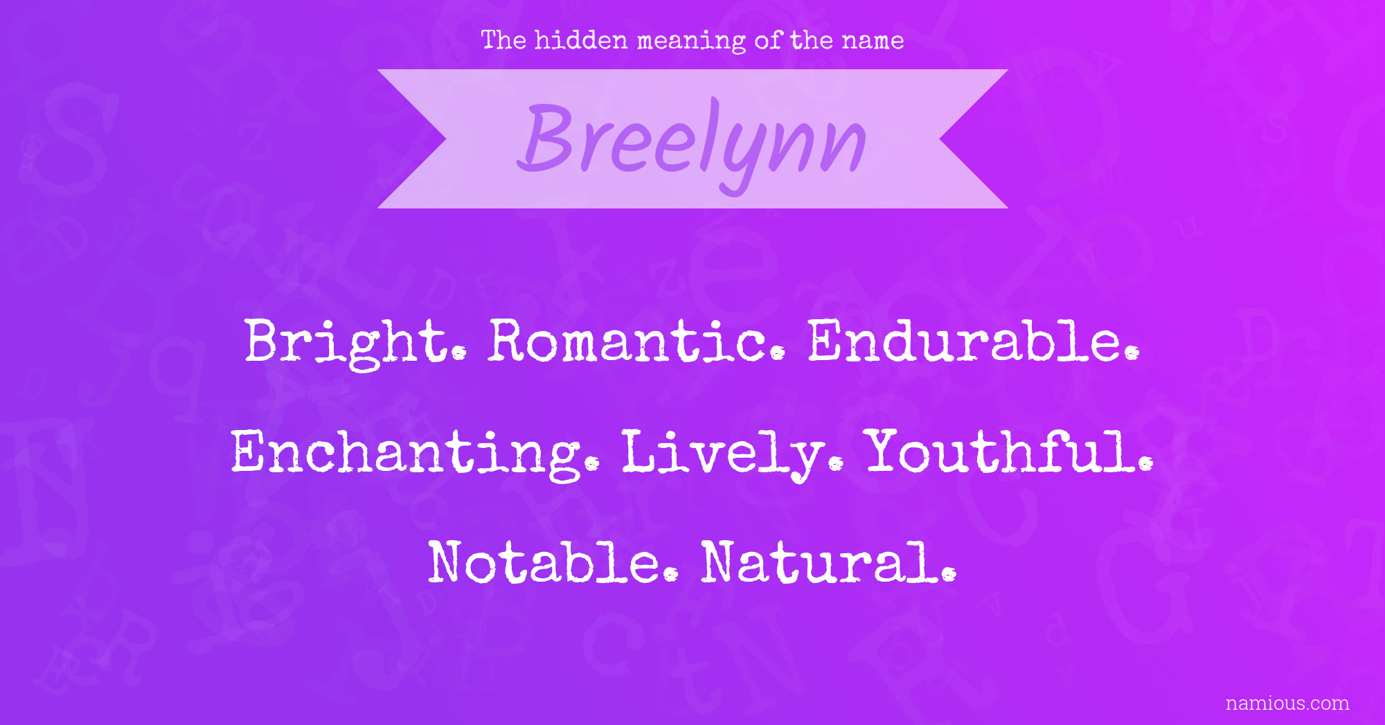 "Breelynn is a bright, romantic, endurable, enchanting, lively, youthful, notable and natural person."