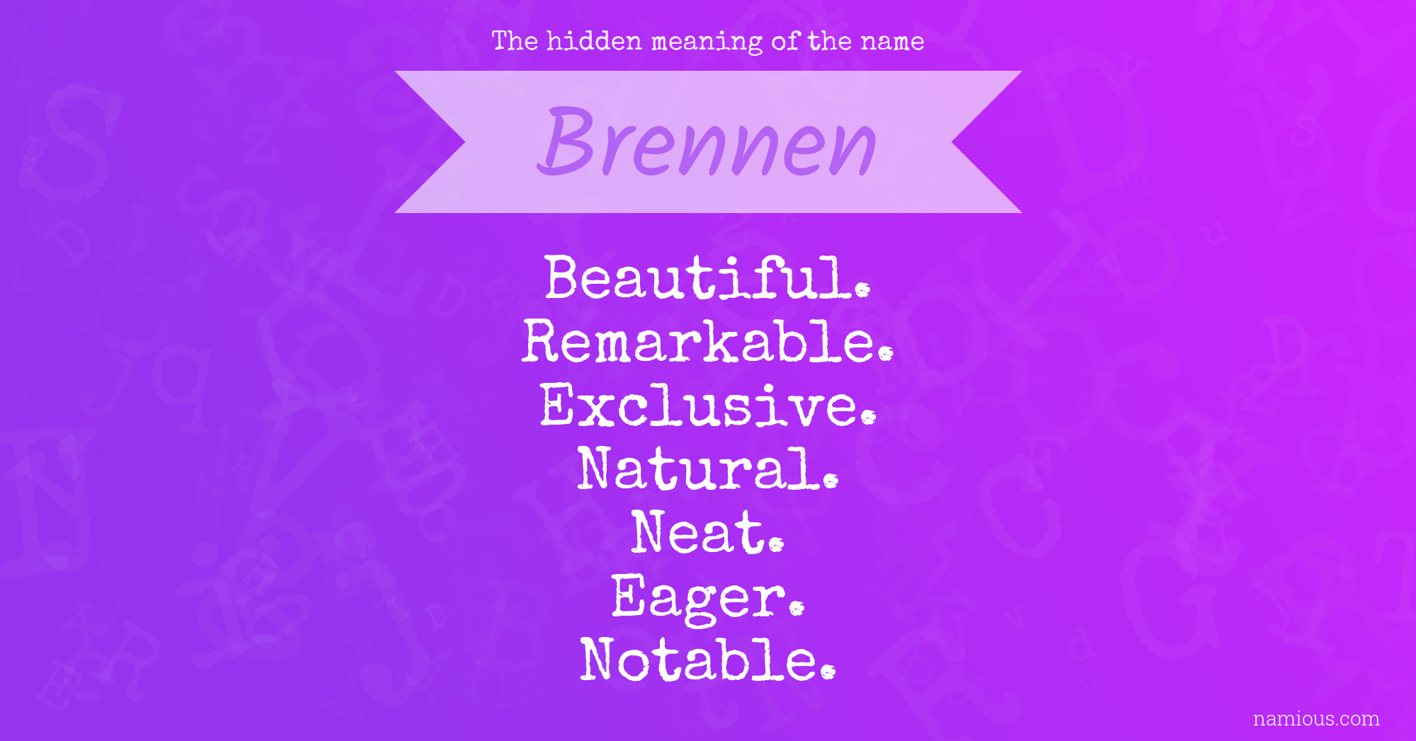 "Brennen is a beautiful, remarkable, exclusive, natural, neat, eager and notable person."