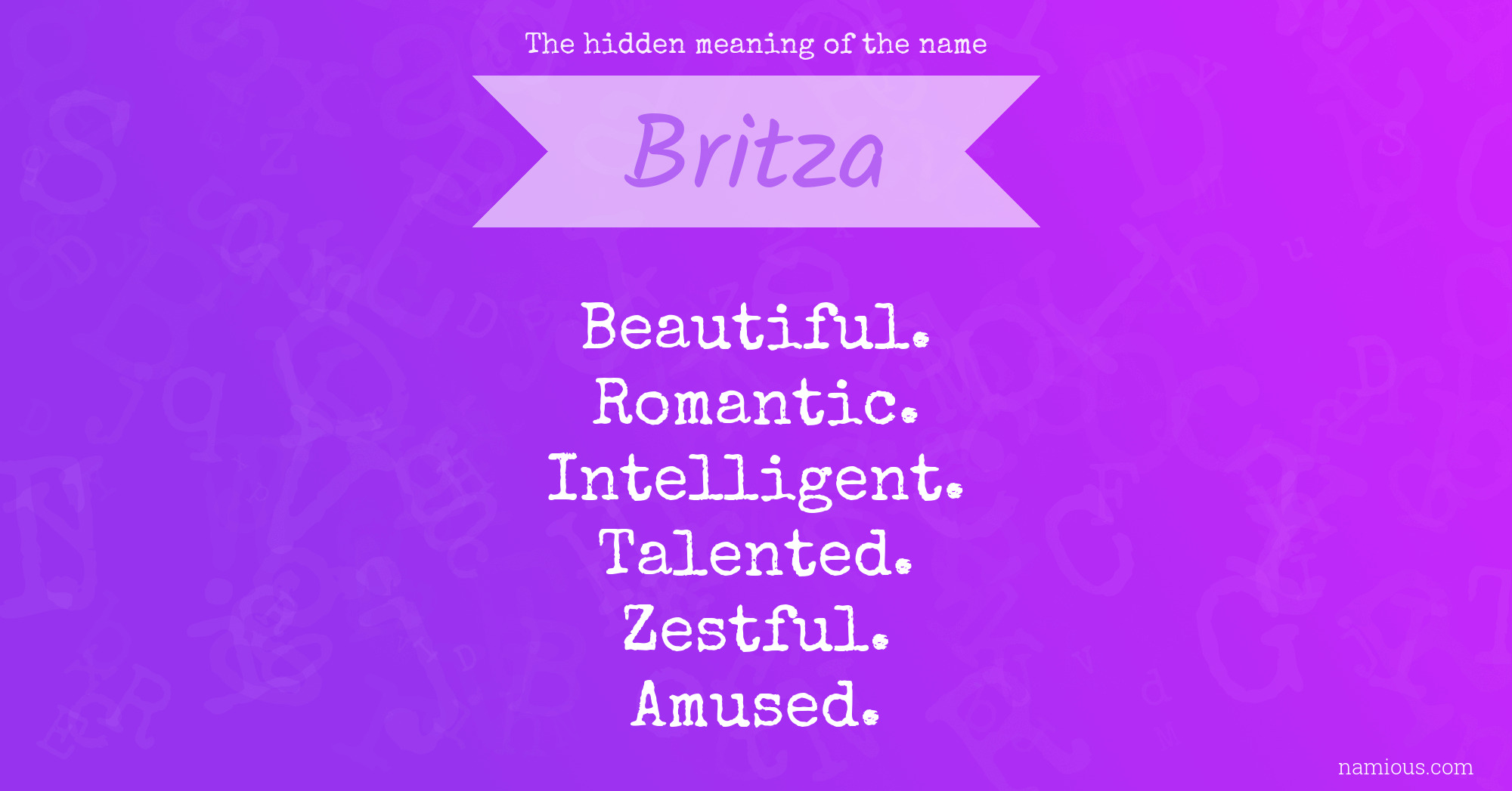 "Britza is a beautiful, romantic, intelligent, talented, zestful and amused person."