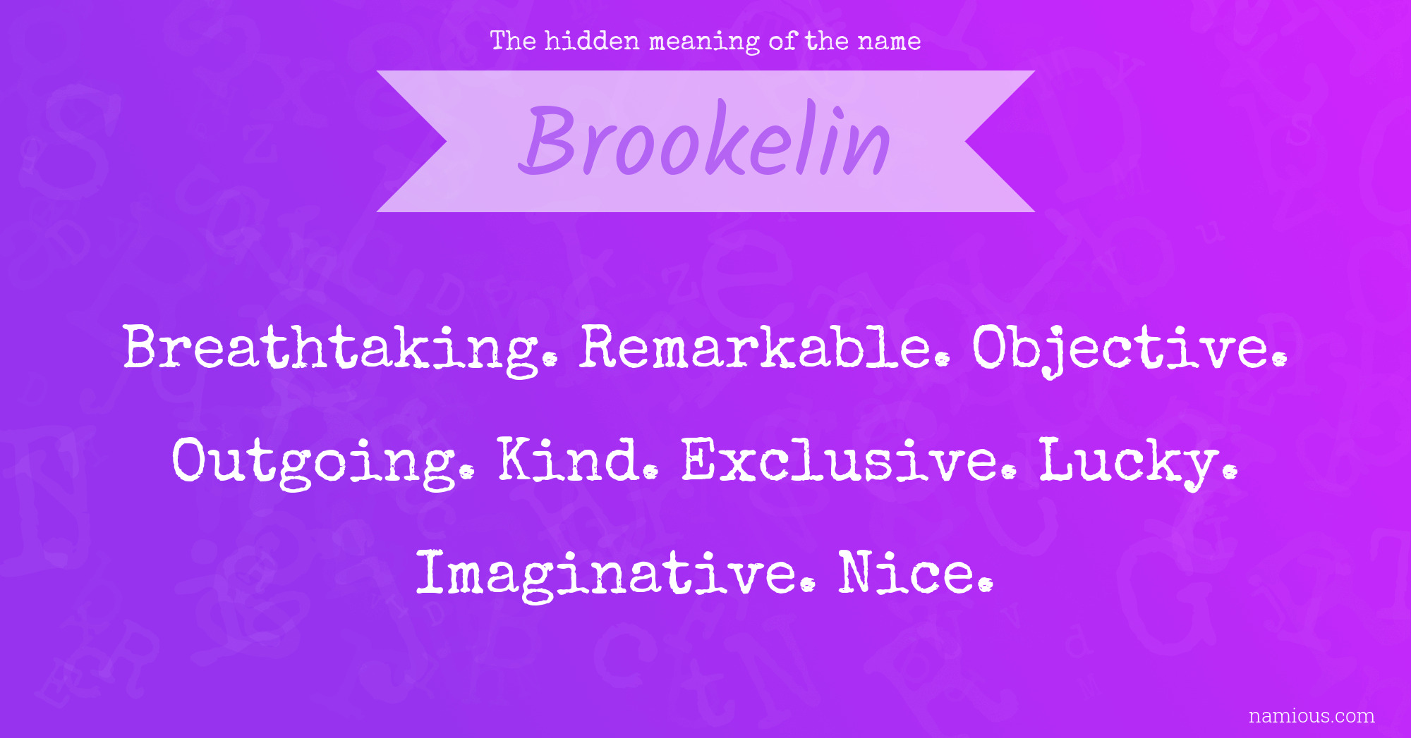"Brookelin is a breathtaking, remarkable, objective, outgoing, kind, exclusive, lucky, imaginative and nice person."