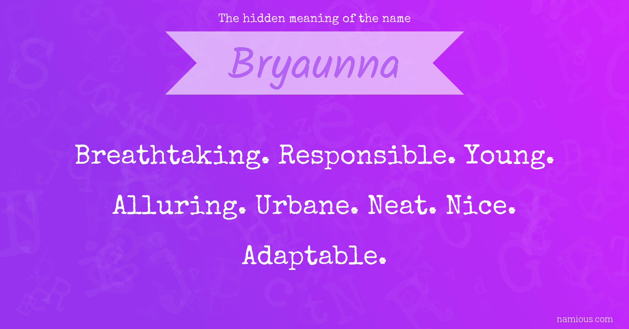 "Bryaunna is a breathtaking, responsible, young, alluring, urbane, neat, nice and adaptable person."