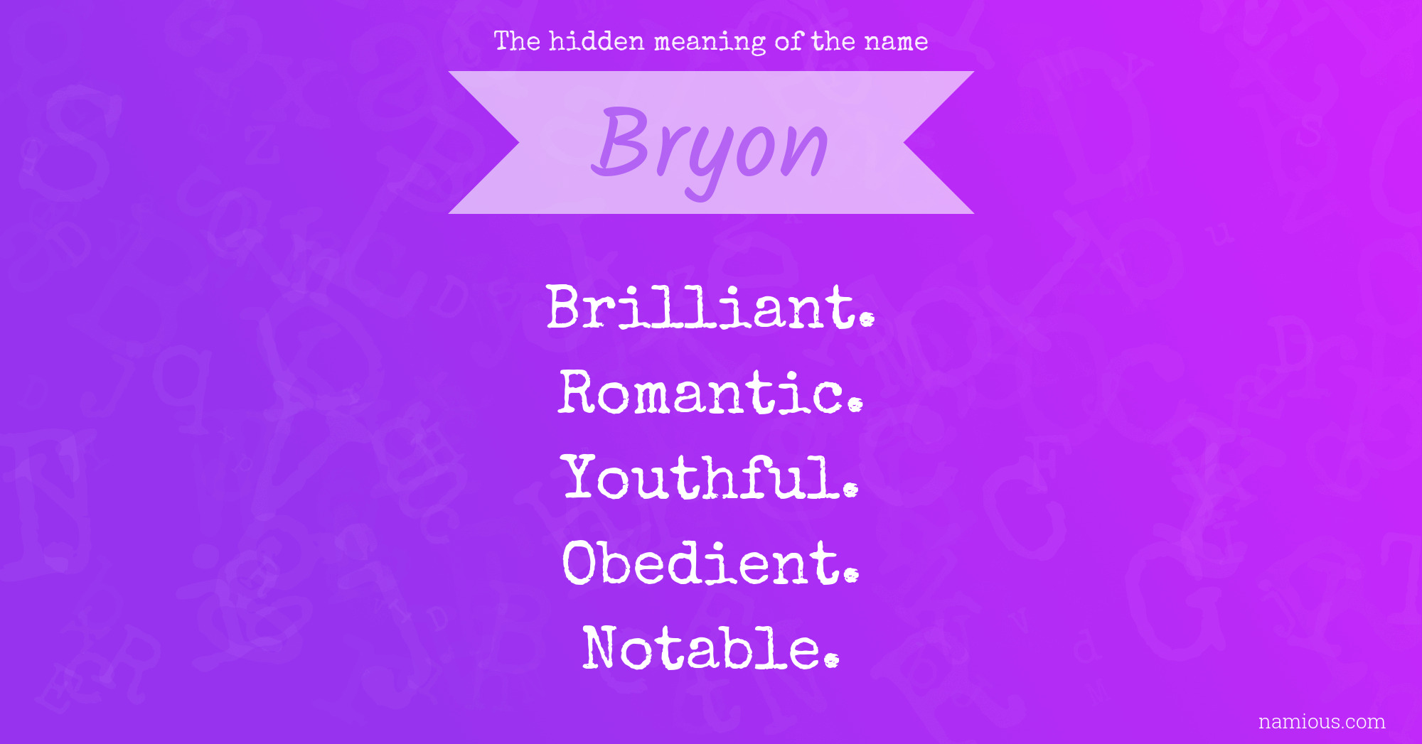 "Bryon is a brilliant, romantic, youthful, obedient and notable person."