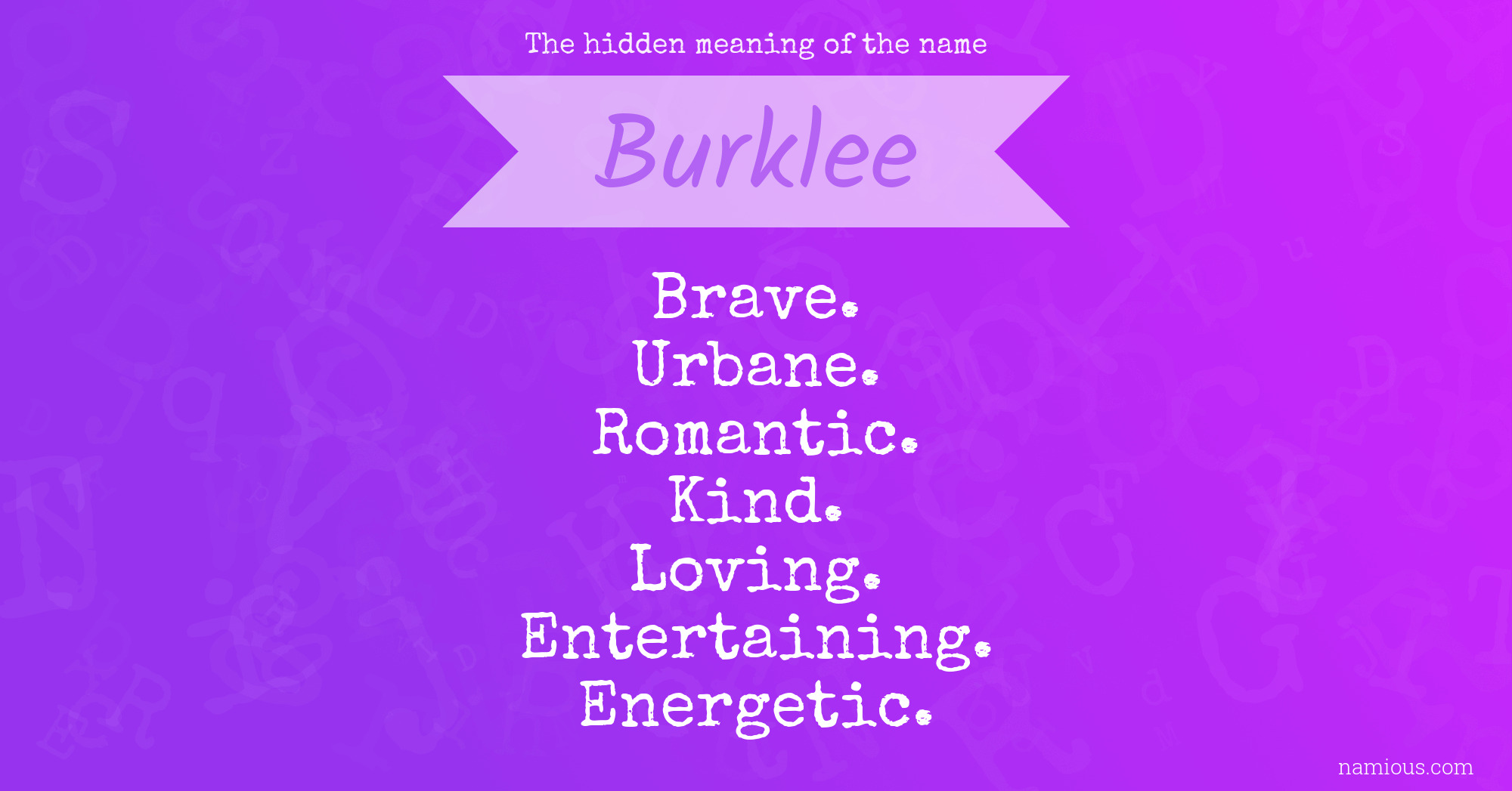 "Burklee is a brave, urbane, romantic, kind, loving, entertaining and energetic person."