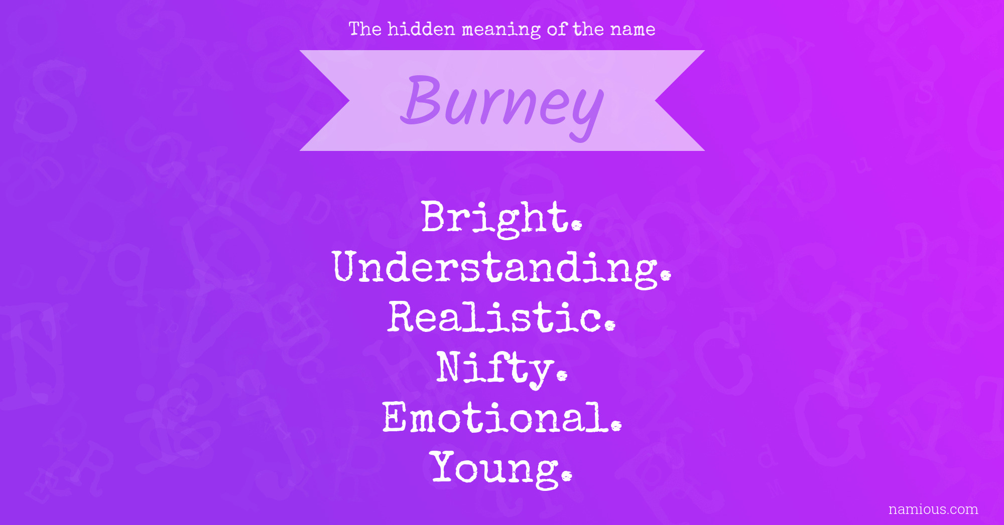 "Burney is a bright, understanding, realistic, nifty, emotional and young person."
