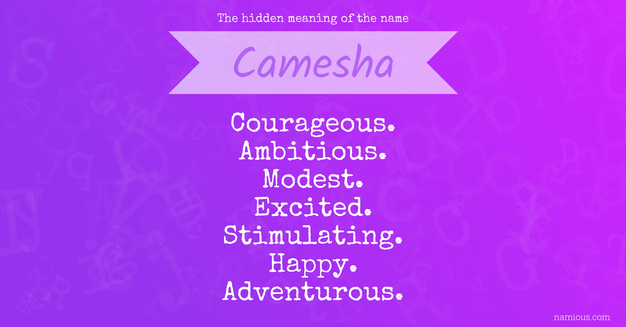 "Camesha is a courageous, ambitious, modest, excited, stimulating, happy and adventurous person."